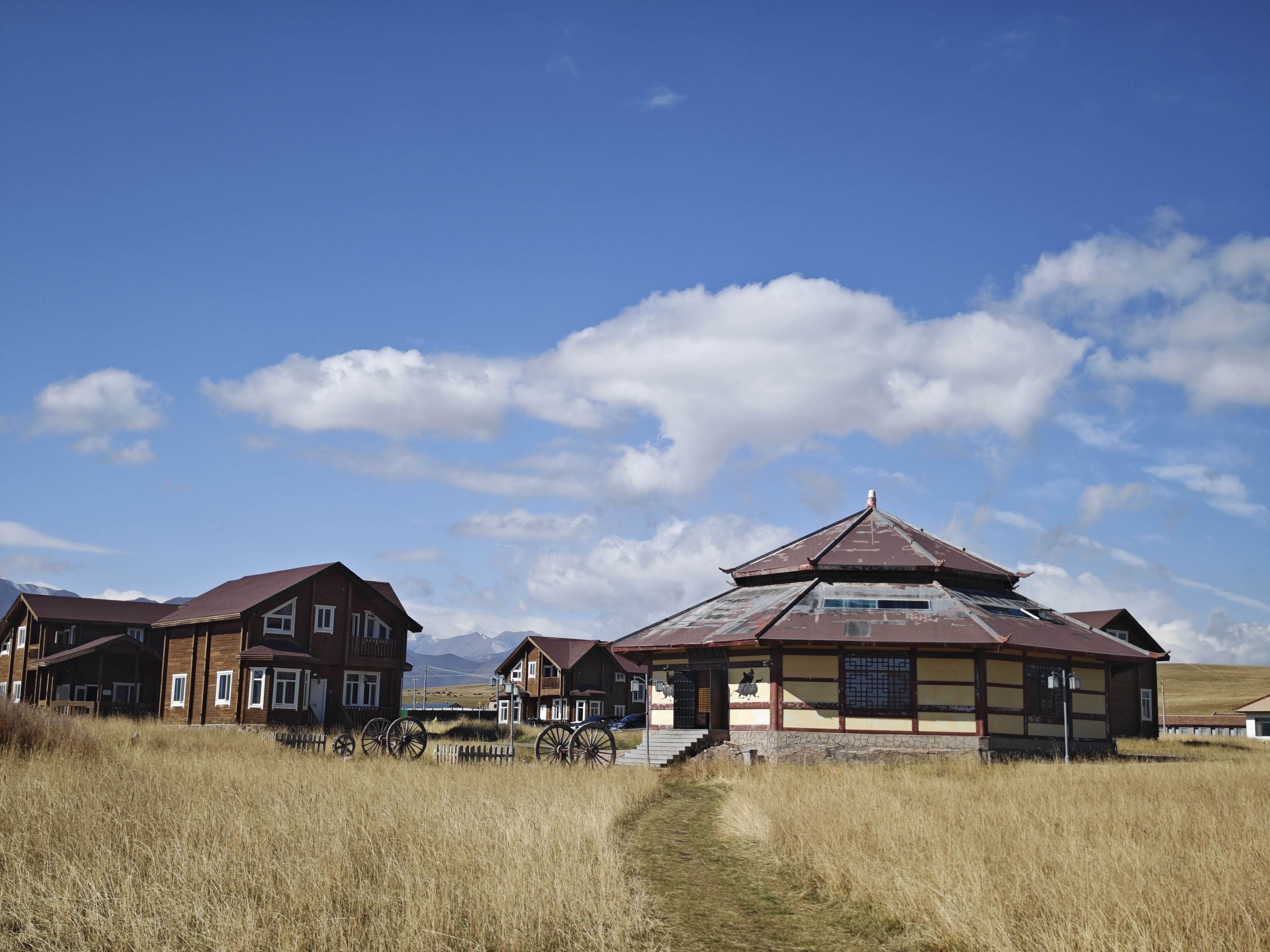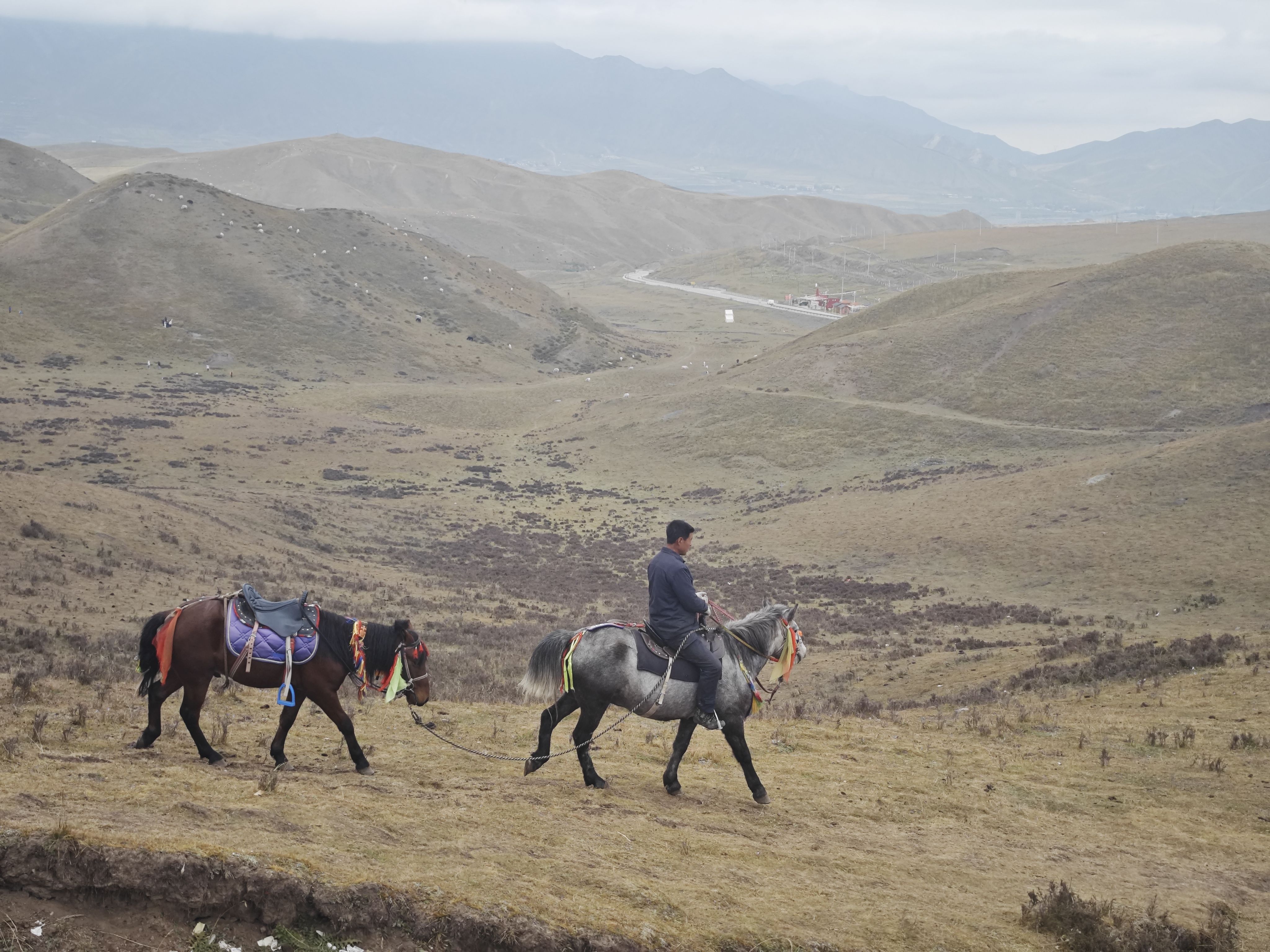 祁连山山脚下的大草原,天气很好,不冷不热,晴空万里,风景格外好看,看到了许多的咩咩咩,行程前半段连续爬升有点吃力,后面平走下坡就轻松多了,整体强度不大,一路上就是各种拍拍拍。