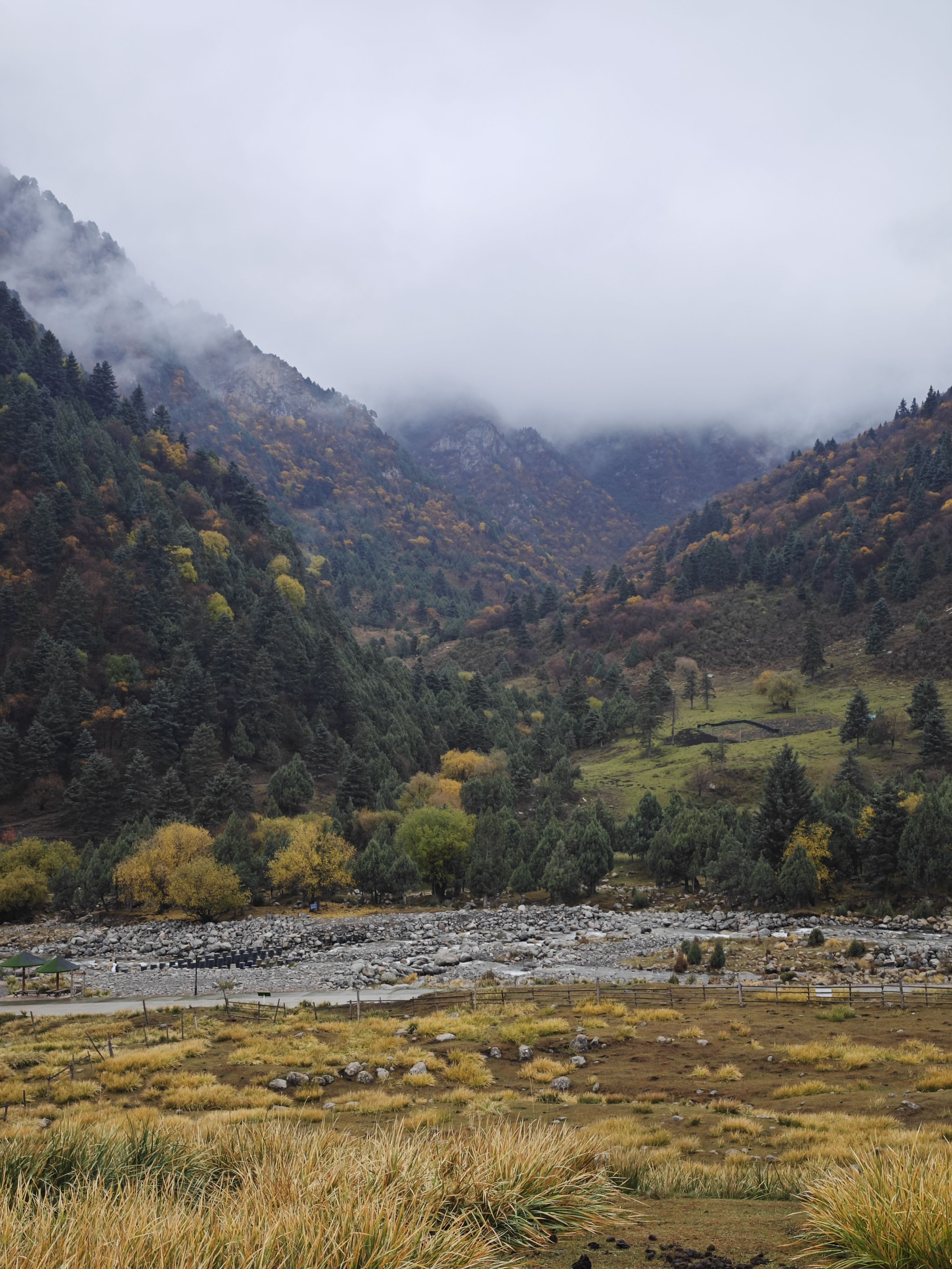 今天出发去祁连山下的冰沟河景区,目标只有一个就是登顶,看看柴尔龙湖,非常可惜,今天的天气非常不好,一下车就下小雨了,走到一半就开始飘雪,越来越大,走到6公里的时候,被景区人员强行劝返了,略有遗憾。