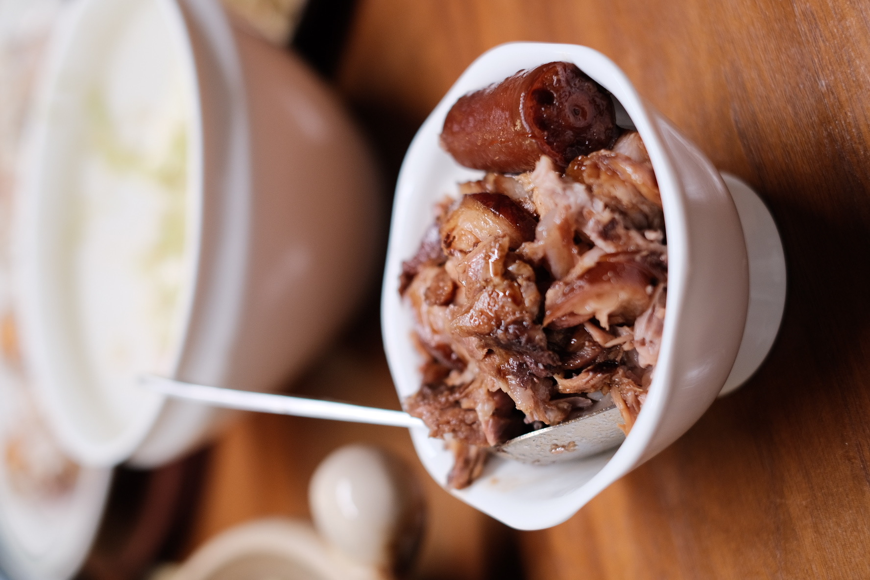今儿把皮皮虾头腰摘下来连着龙虾肺加葱头熬了半个小时高汤,肉末鸡蛋和虾黄拌匀一起蒸,高汤收浓刚刚好铺在肉饼中间。