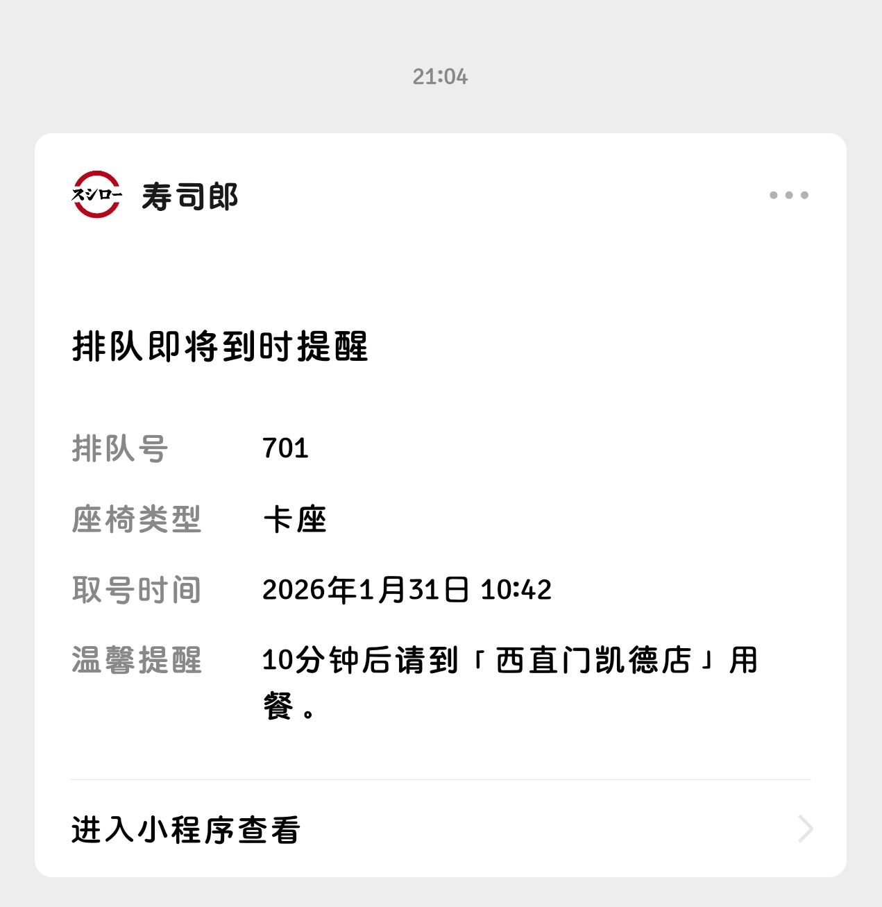 寿司郎的排队有点太夸张了,中午10:42取的号,晚上21:04才排到😑