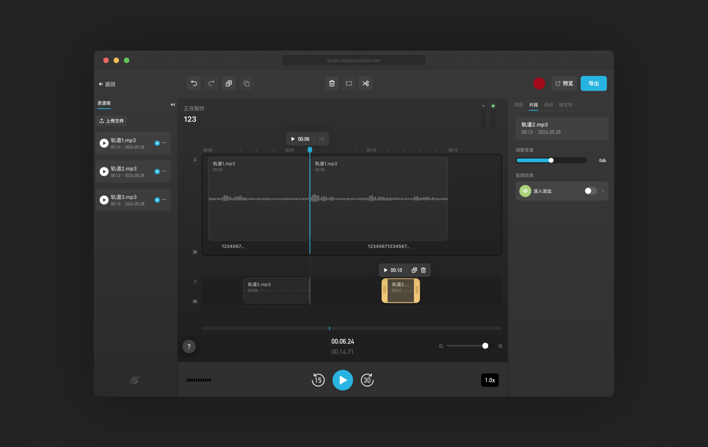 专为播客设计的剪辑工具。欢迎试用。有使用问题可以直接反馈。