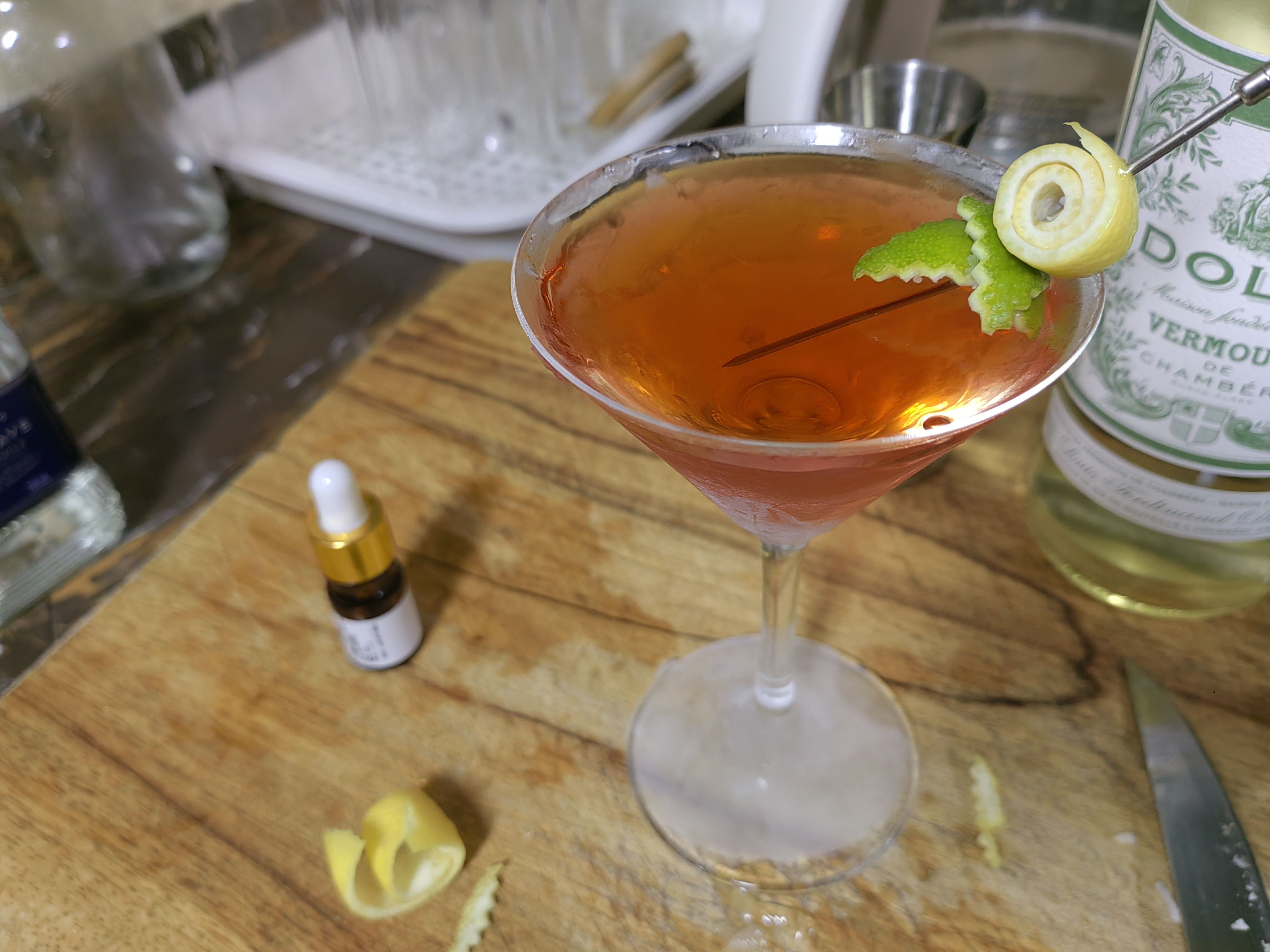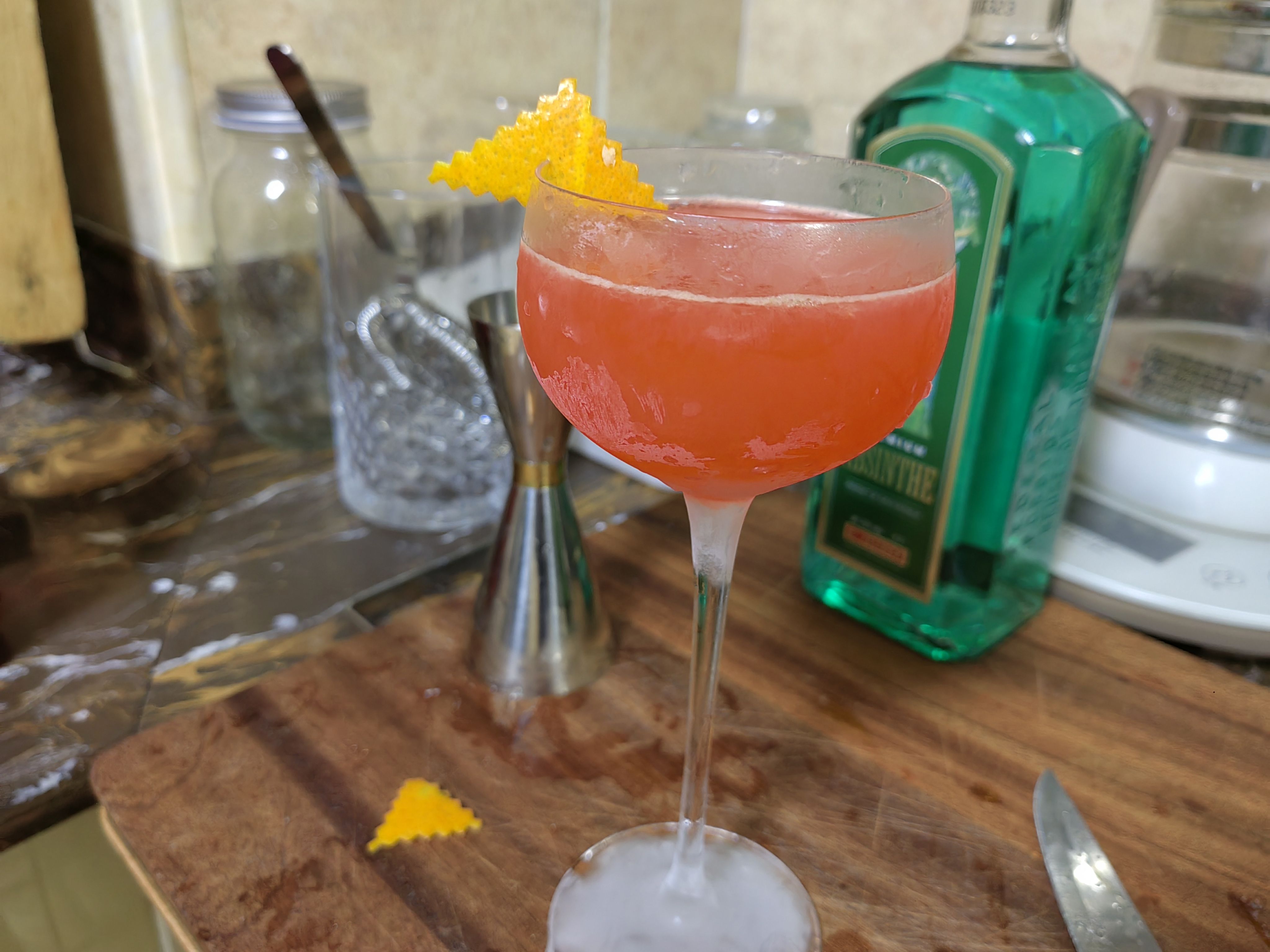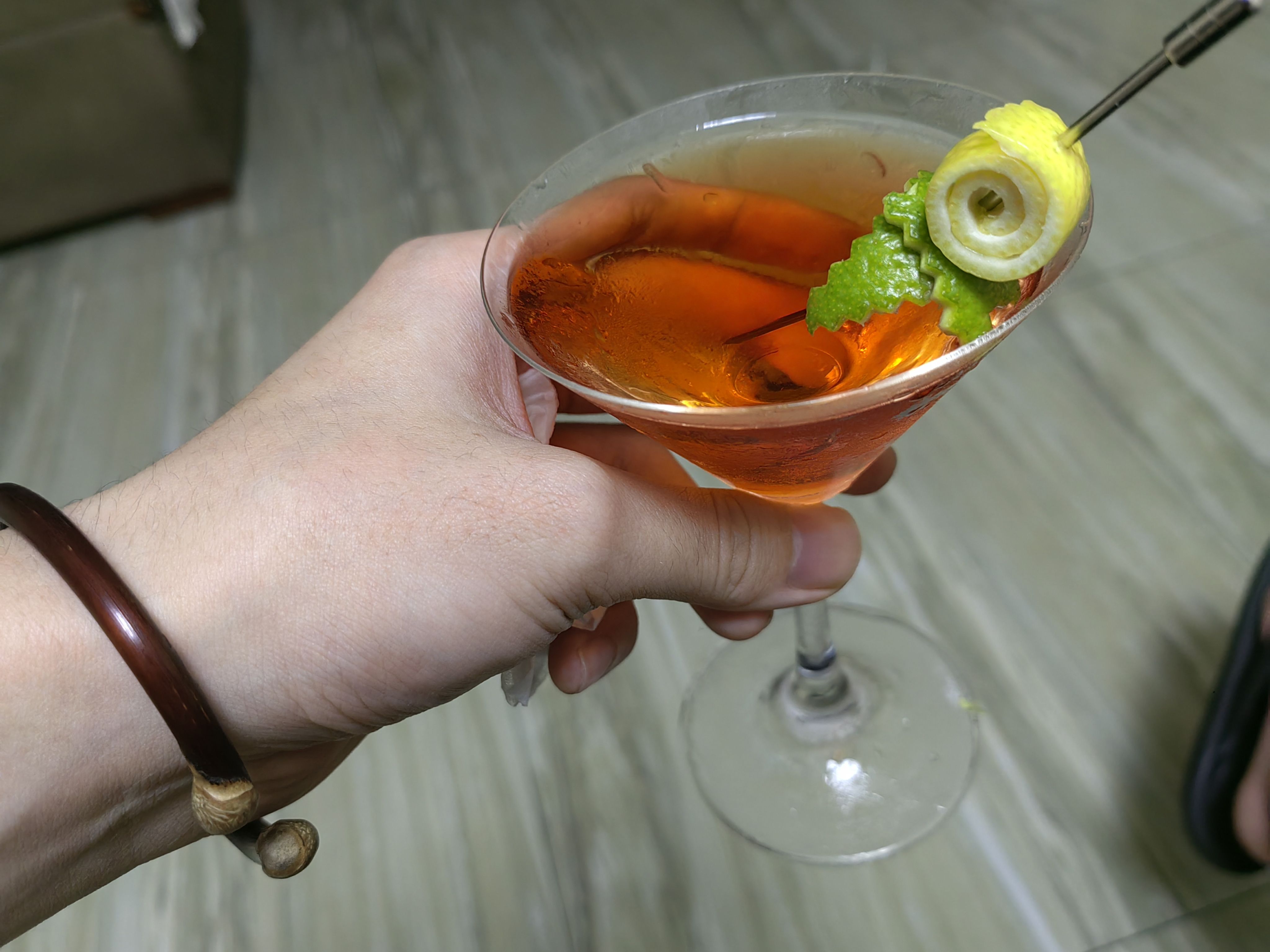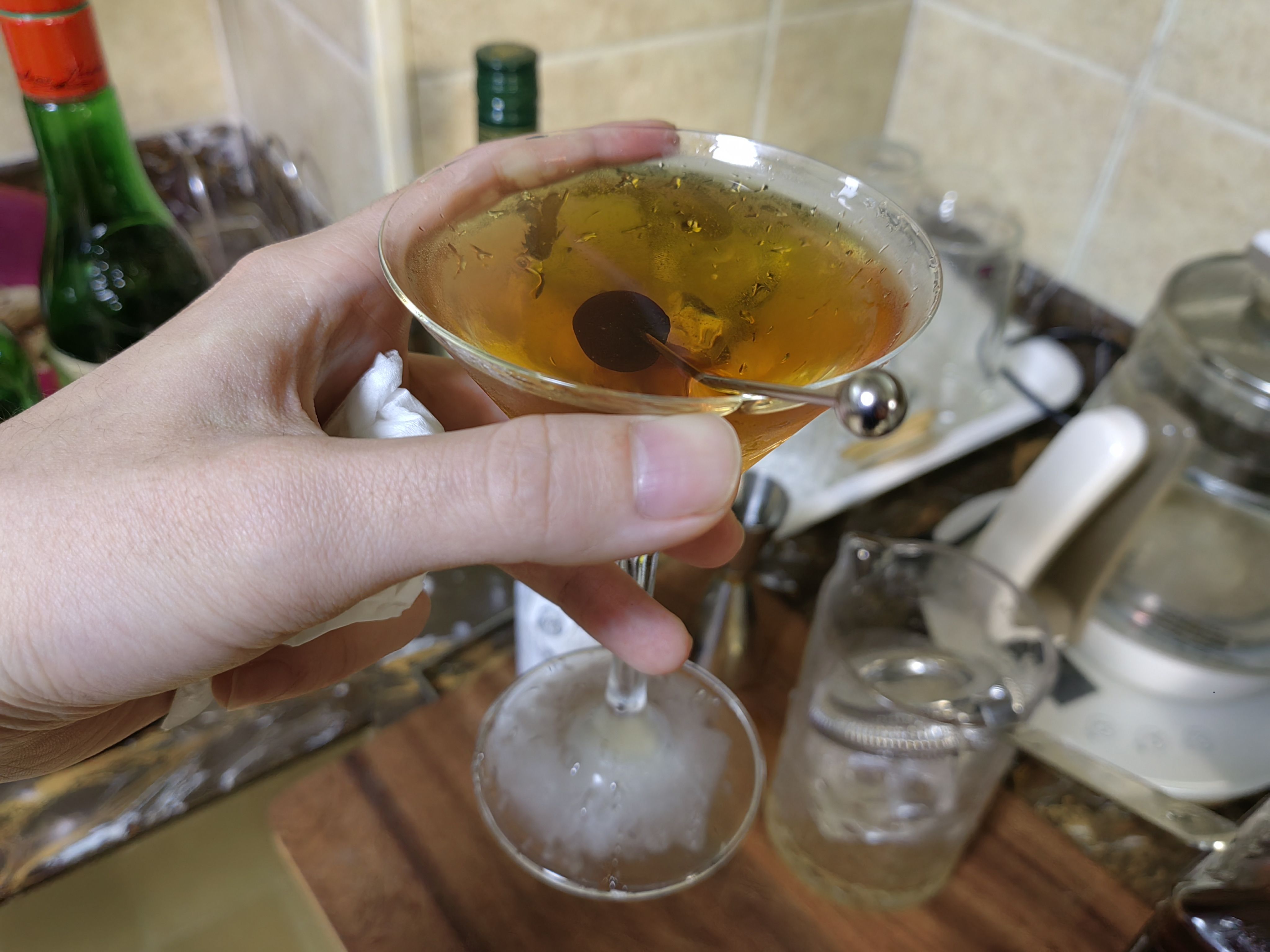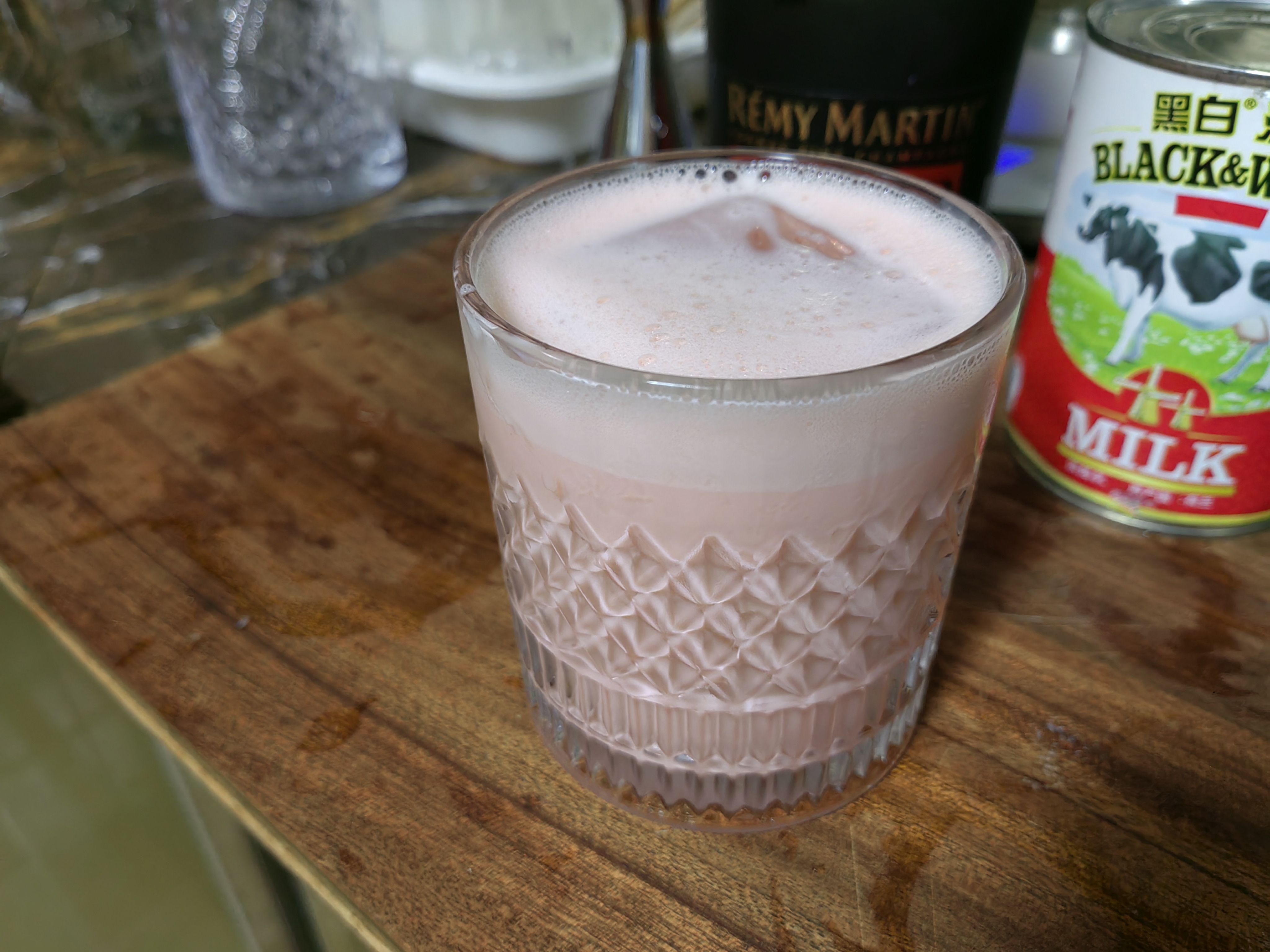 苦艾酒买了实在是喝不了一点,那股子香菜味接受不能,在调酒里只要加上一点就会让整杯饮料变成苦艾酒的味道,侵略性很强,但这个配方绝妙的压制了苦艾酒的怪味,让它在里面成为风味陪衬,甜中带着一点奇异的香味,咽下以后又在喉咙里翻腾,很妙。