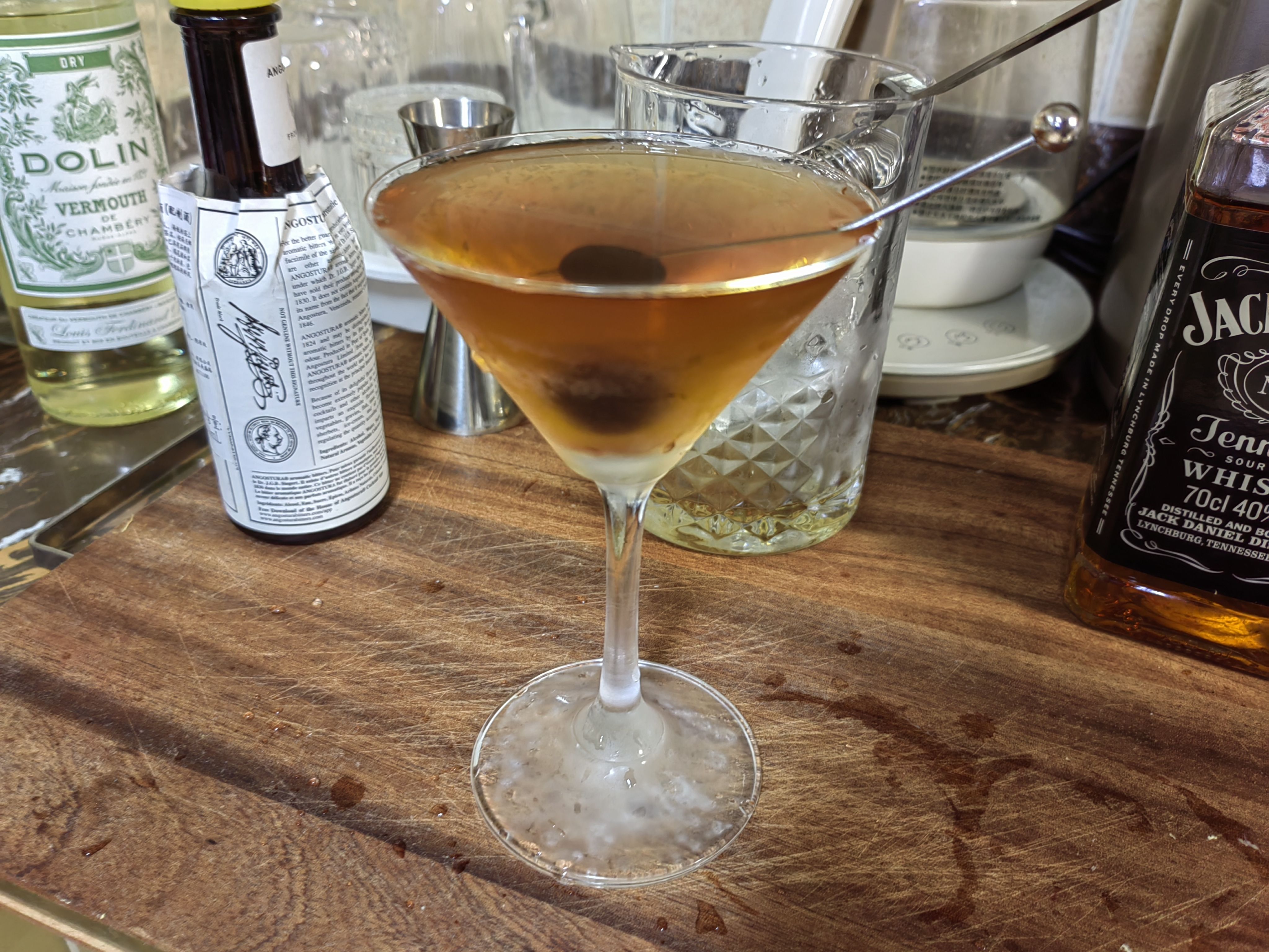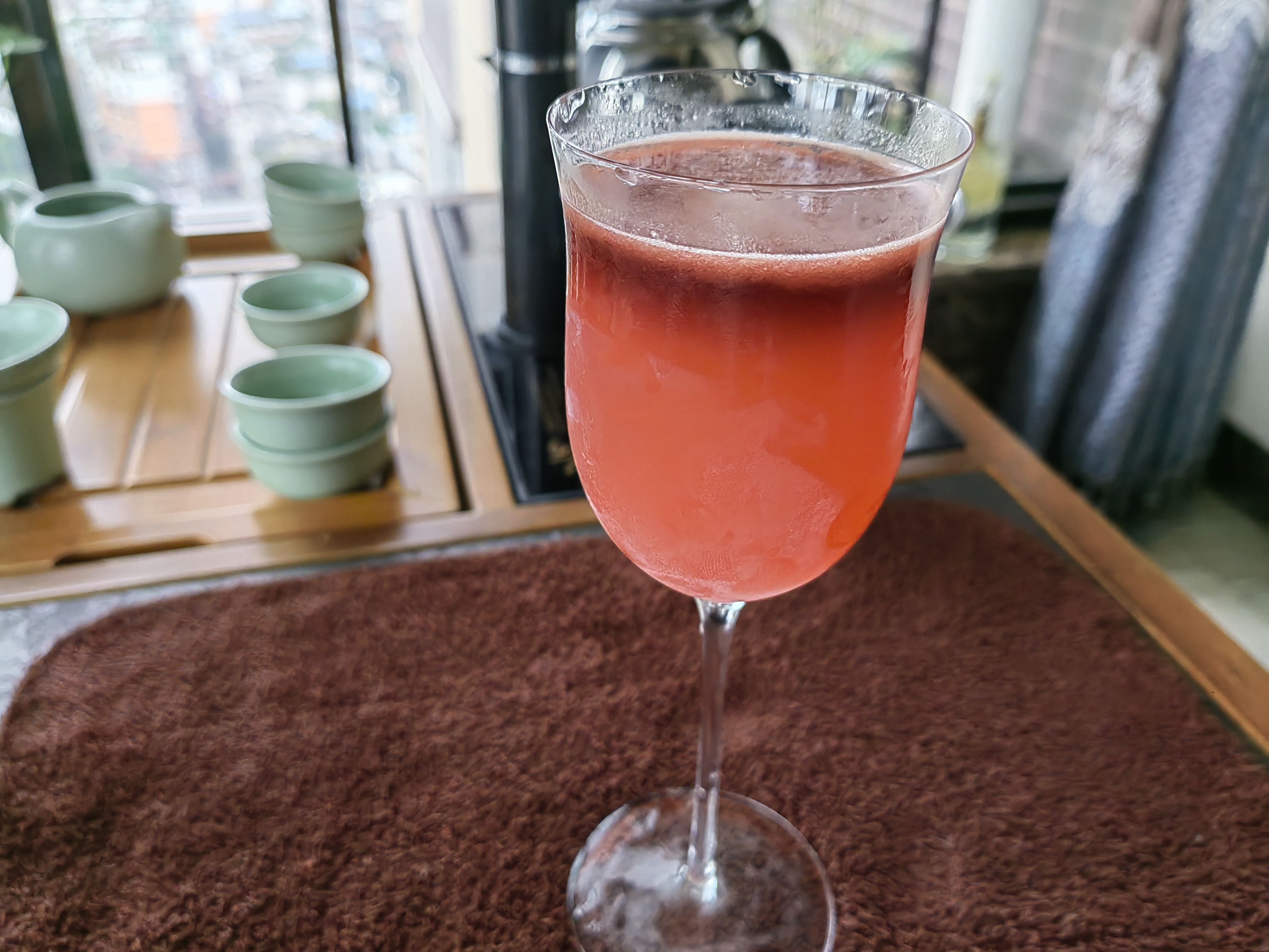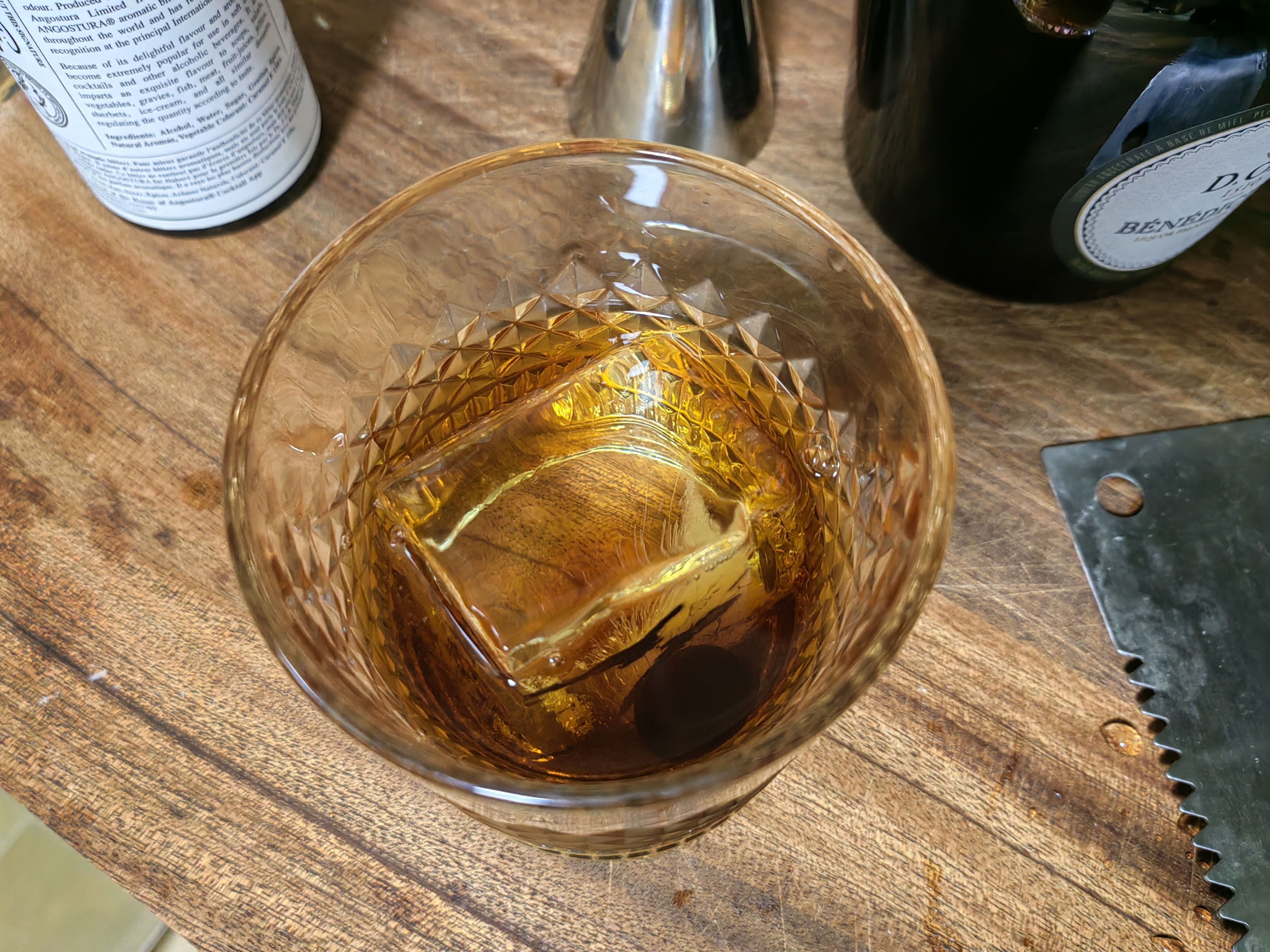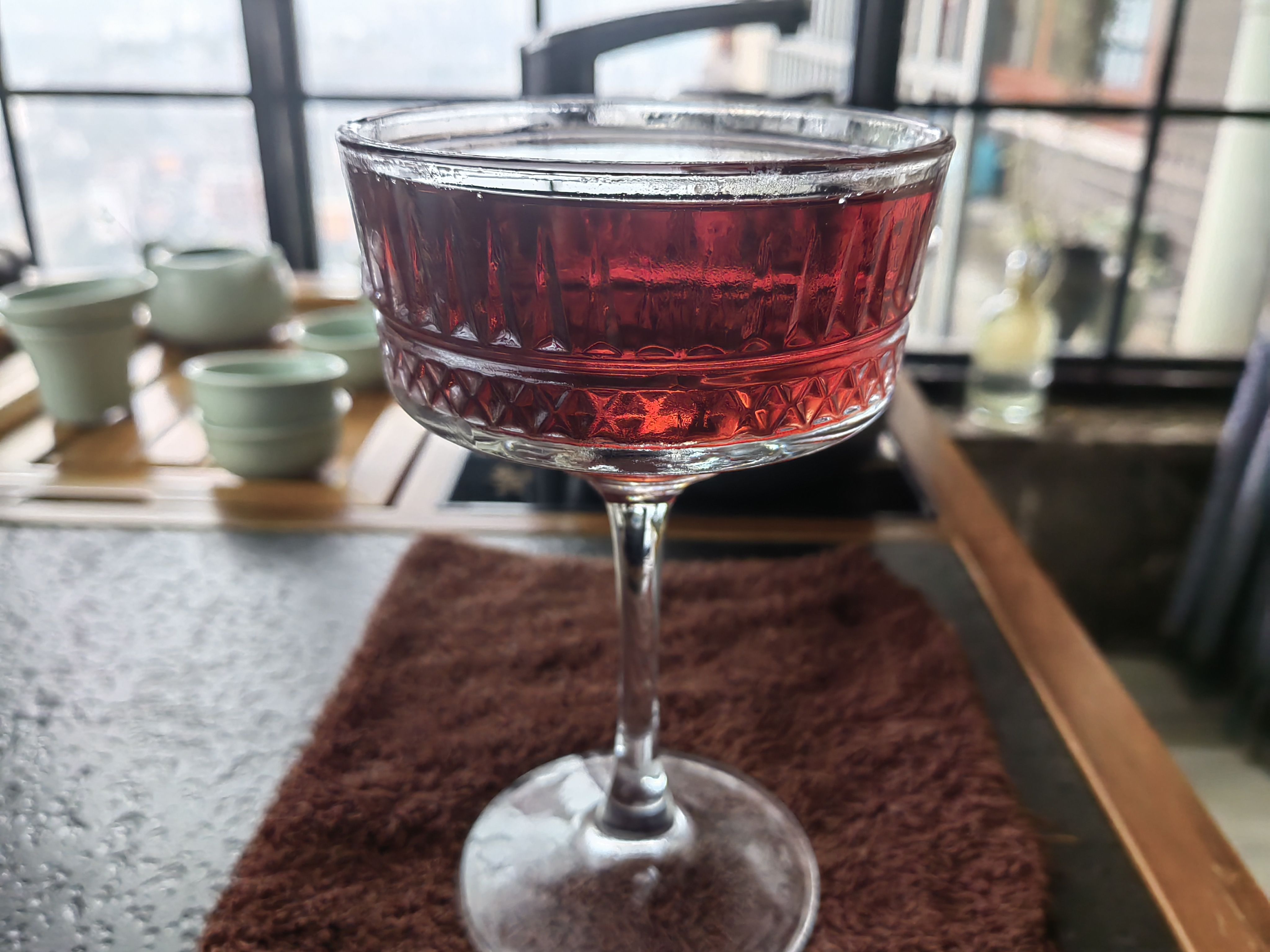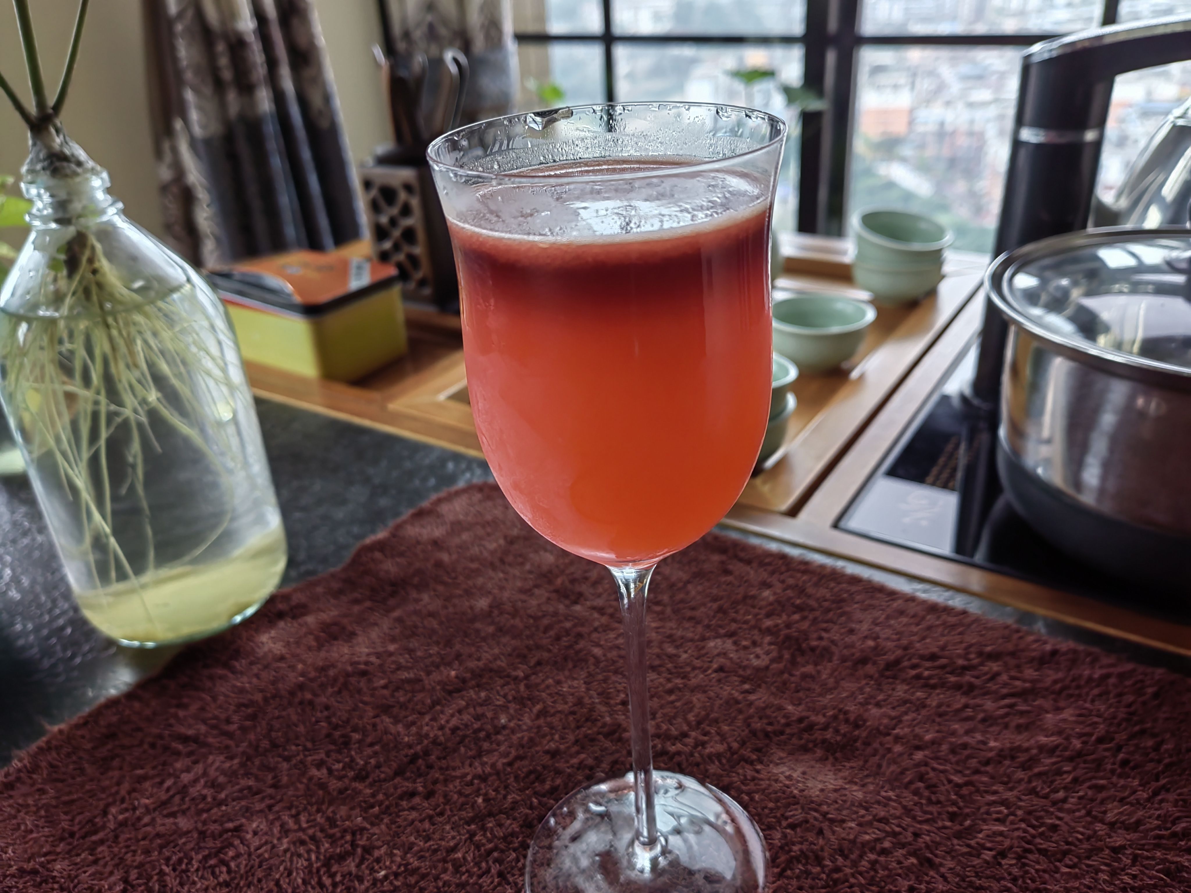 苦艾酒买了实在是喝不了一点,那股子香菜味接受不能,在调酒里只要加上一点就会让整杯饮料变成苦艾酒的味道,侵略性很强,但这个配方绝妙的压制了苦艾酒的怪味,让它在里面成为风味陪衬,甜中带着一点奇异的香味,咽下以后又在喉咙里翻腾,很妙。