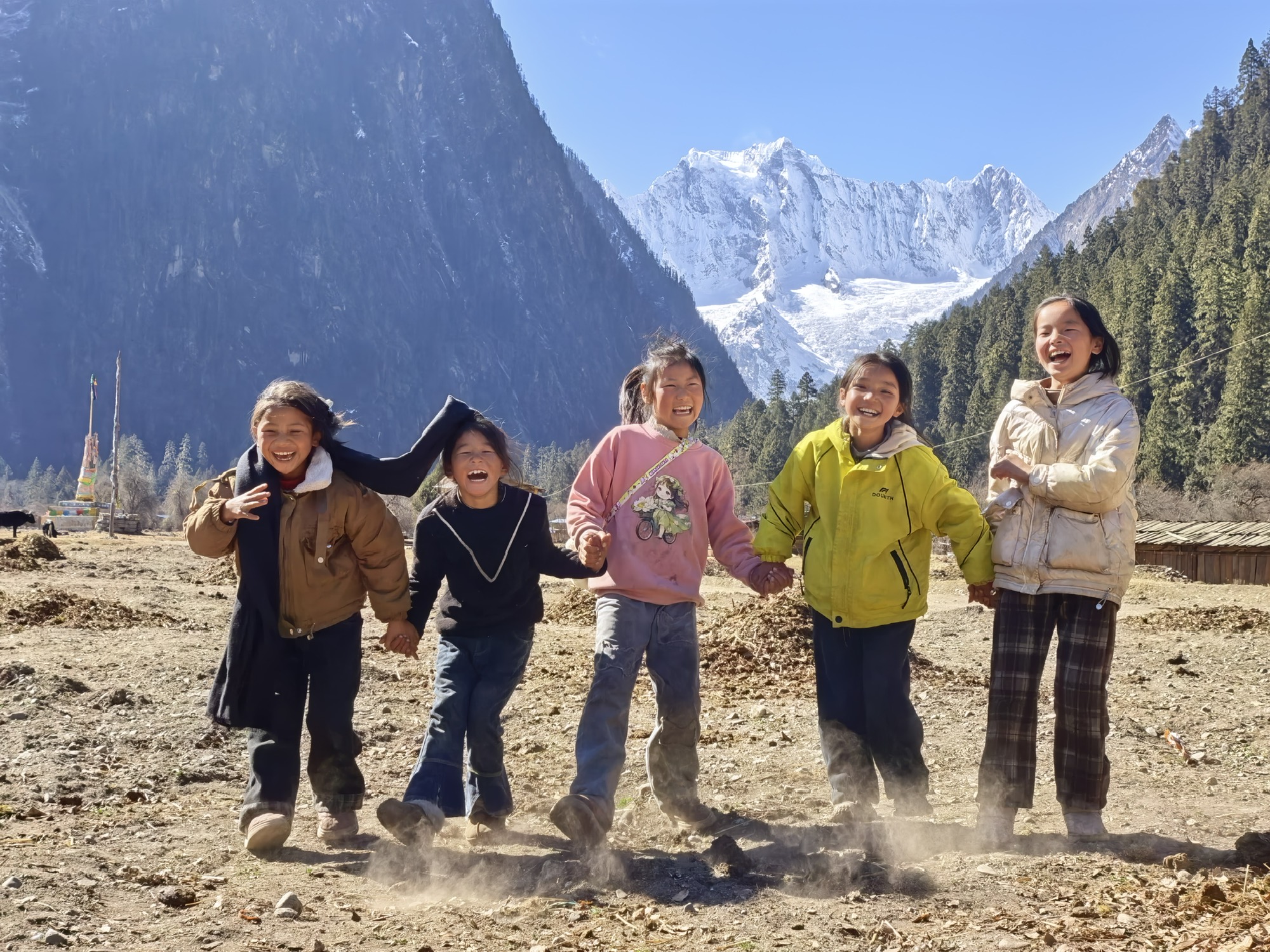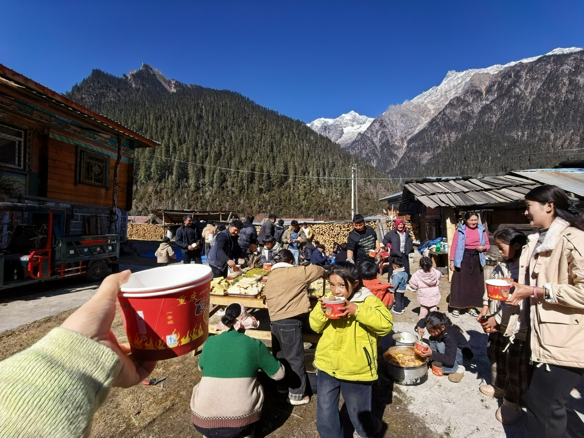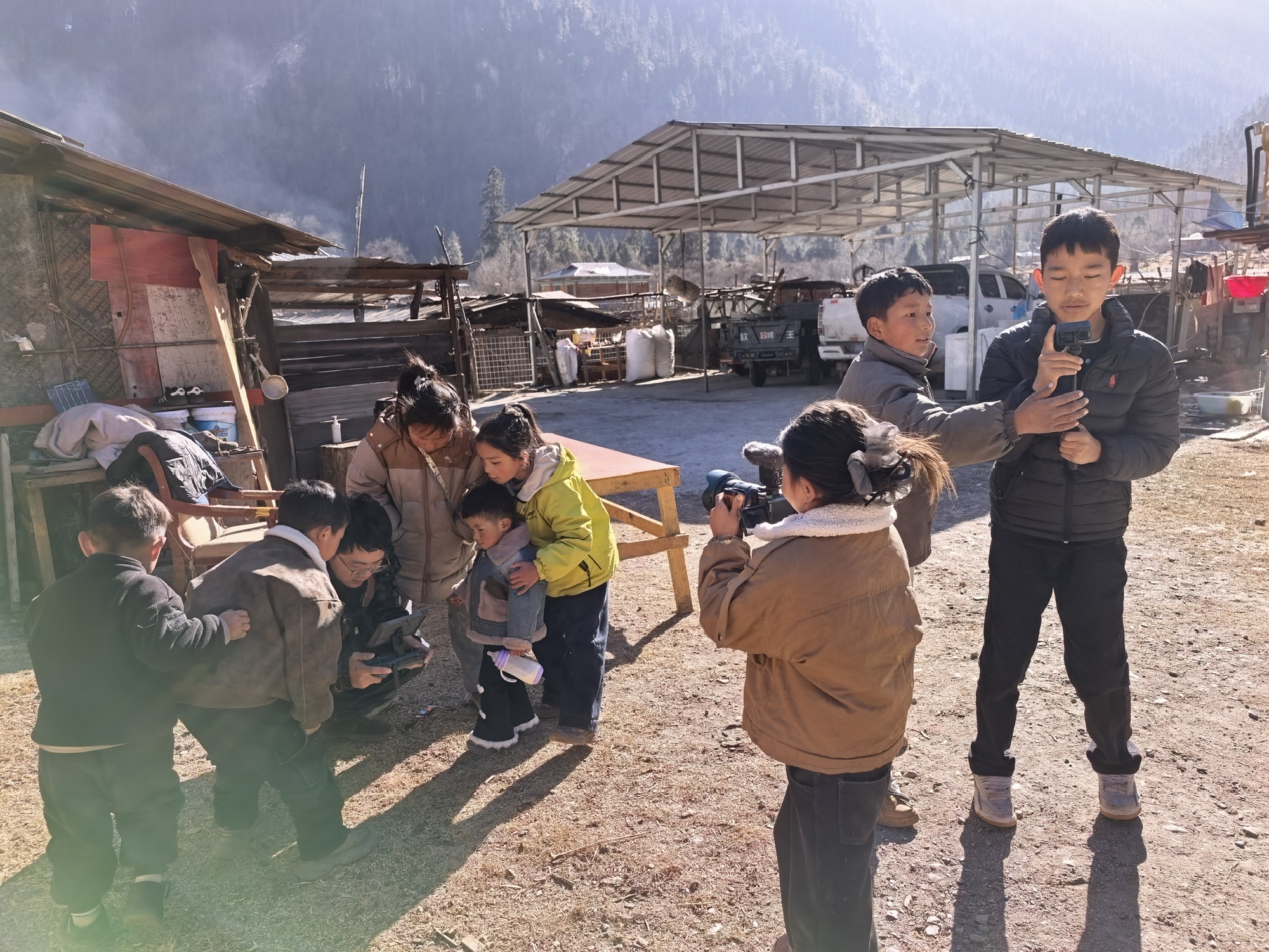 今天如约跟着旺姆去姑姑家做客,恰好遇上村里过小年。一整天都被孩子们簇拥着,欢声笑语不断,玩到嗓子都有些哑了。