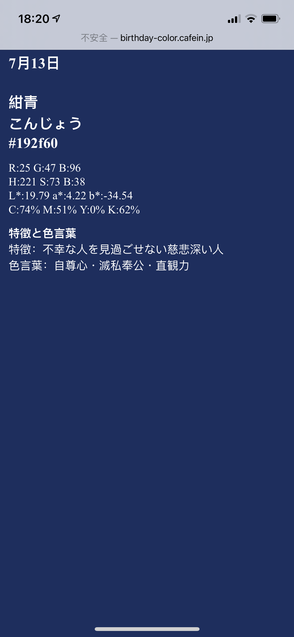 生活委员: 祝你生日快乐吖!🎂 这是一条只有生日当天的你,才能看到的动态☺️ 也没什么好送的,那就送你一份生日色吧! http://birthday-color.cafein.jp/ 这是可以查看自己生日颜色的神奇网站~ 独一无二的颜色代表了什么类型的人格~ 看不懂日文的话,可以借用翻译器:https://fanyi.baidu.com/ 记得转发留言告诉我,你的生日色是什么颜色哦~🌈