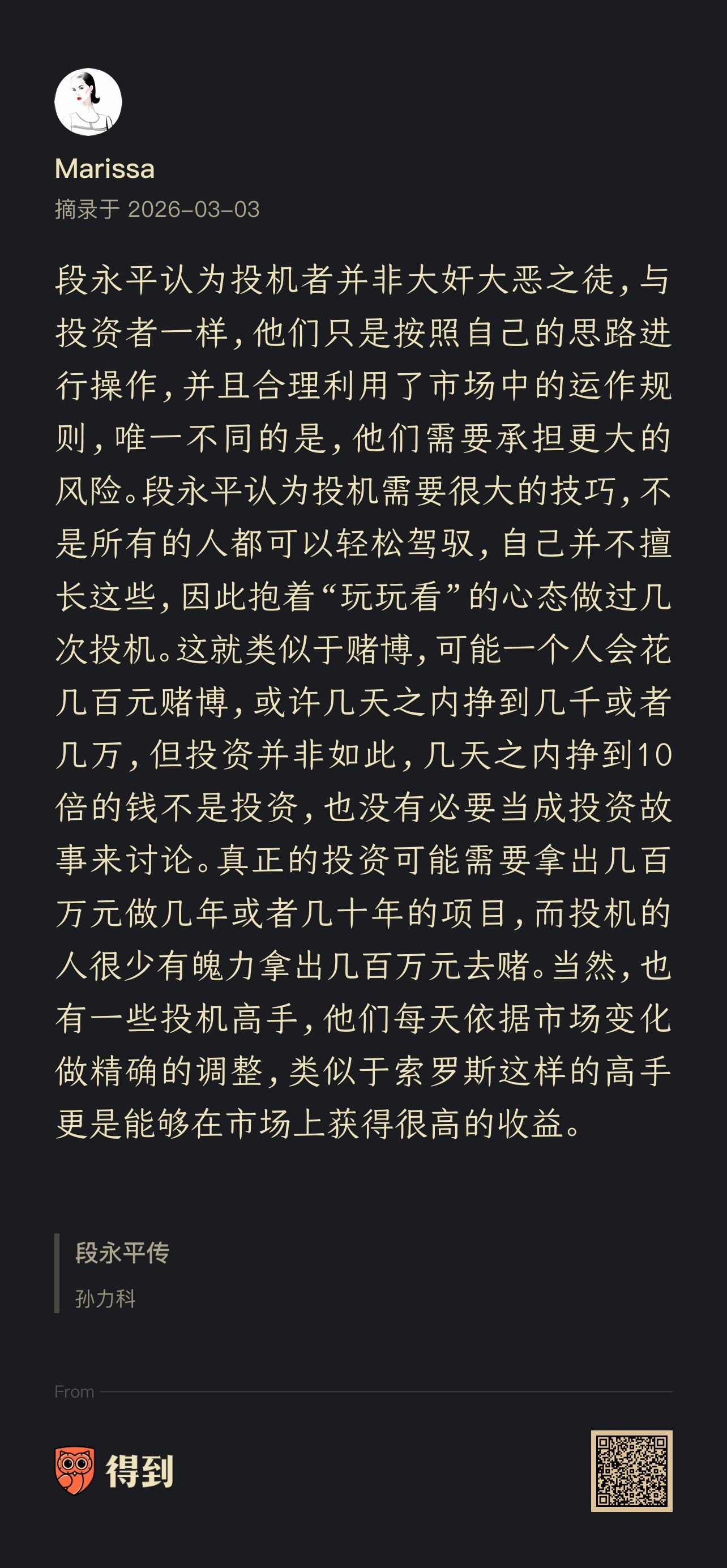 而投机哪怕一个月赚10倍,其实也只是几千或几万去玩玩而已,这种投机类似赌博
