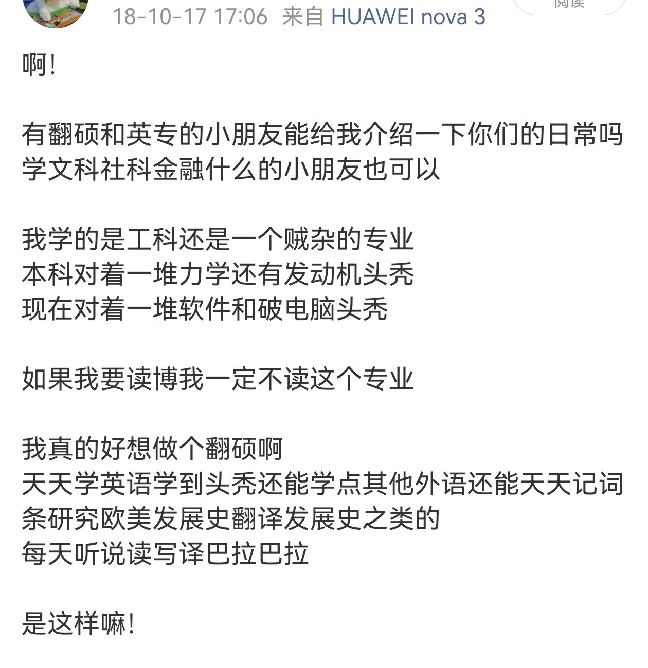 读工科读到吐的时候好奇其他专业什么感受