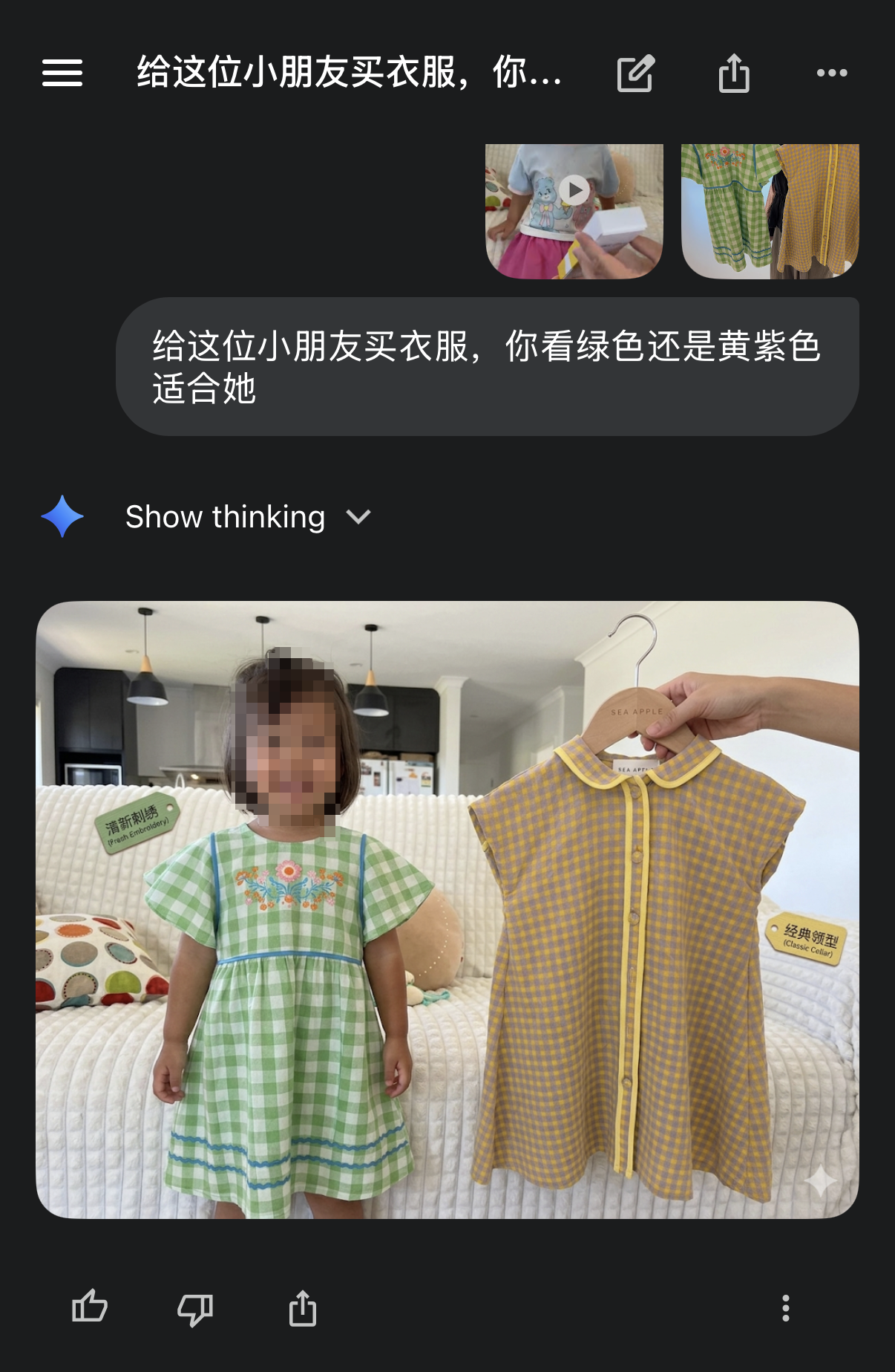 给小朋友买衣服,想问问Gemini哪个好看一点