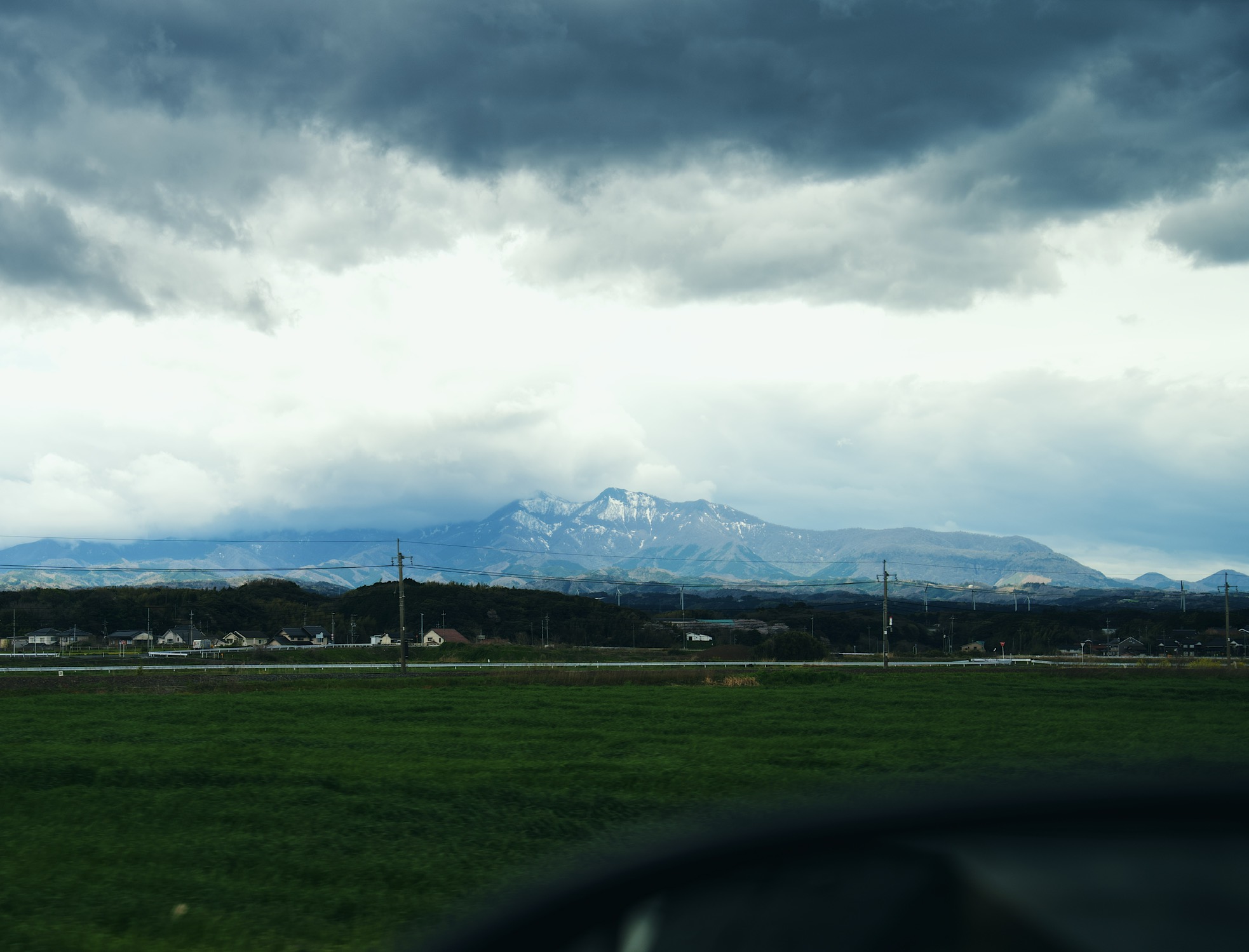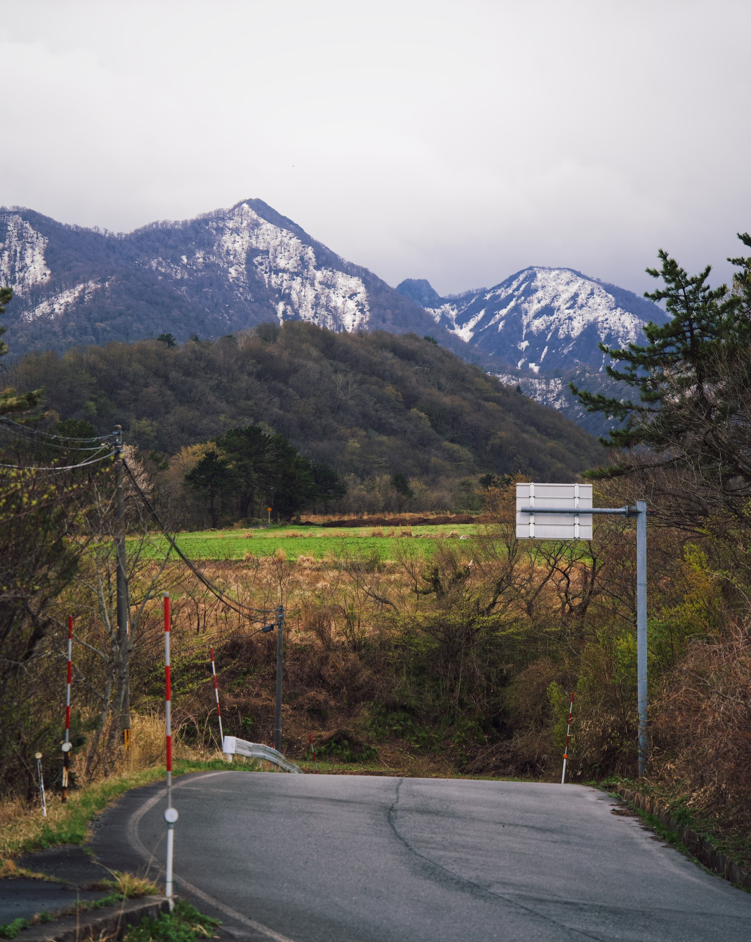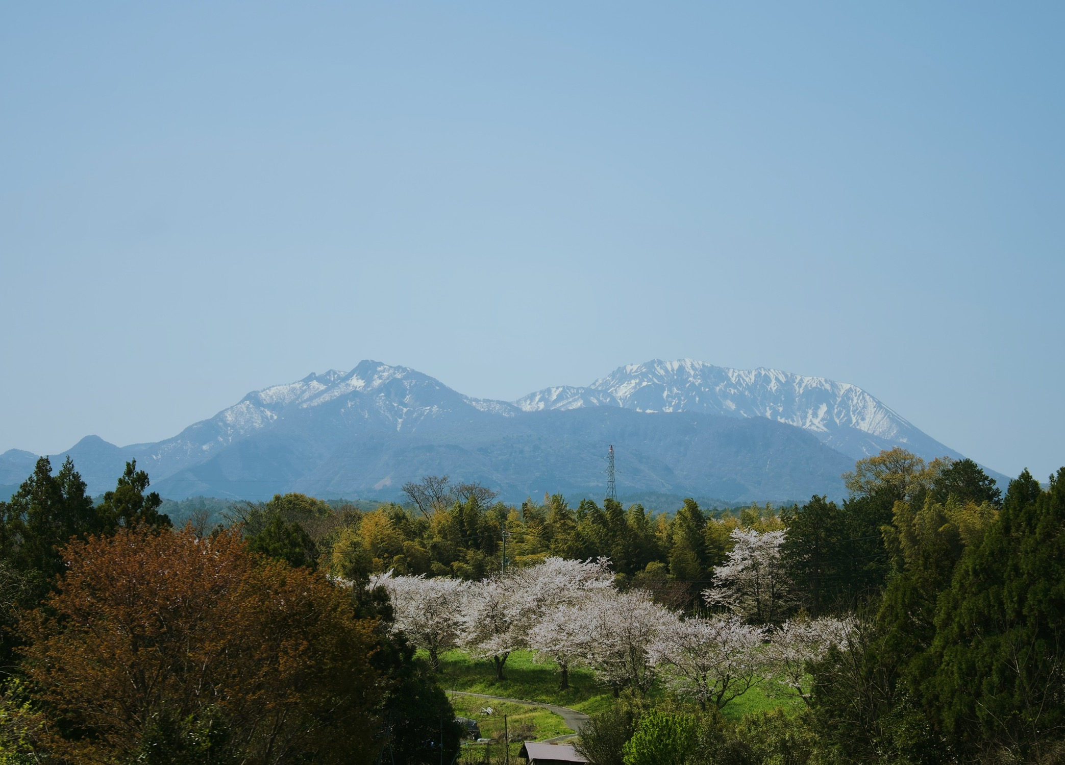 P8: 刚下过雨,从三朝温泉开车前往大山隐岐的路上,同时看到雪山和樱花