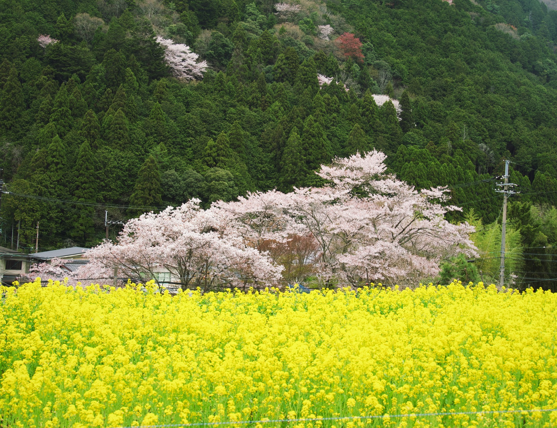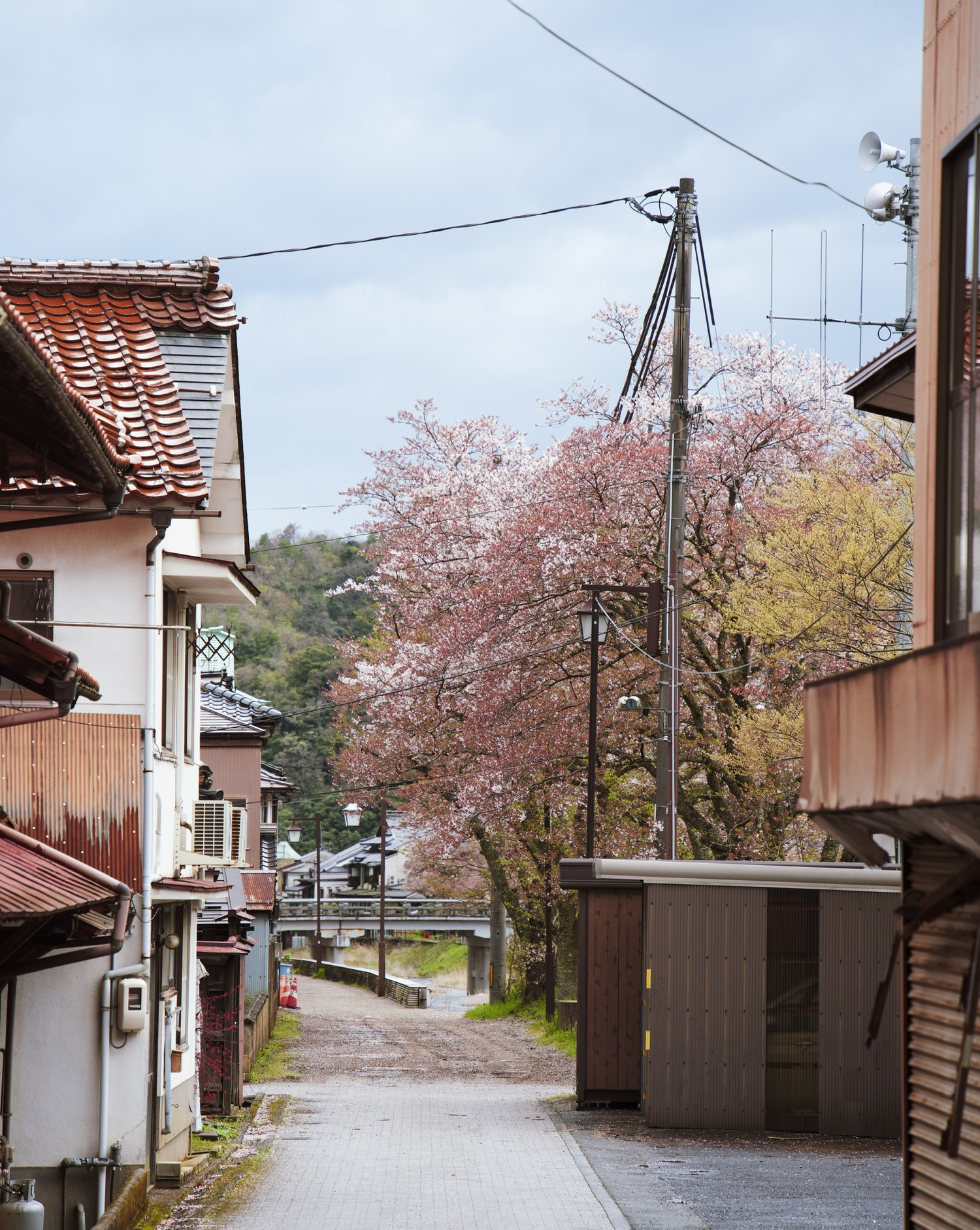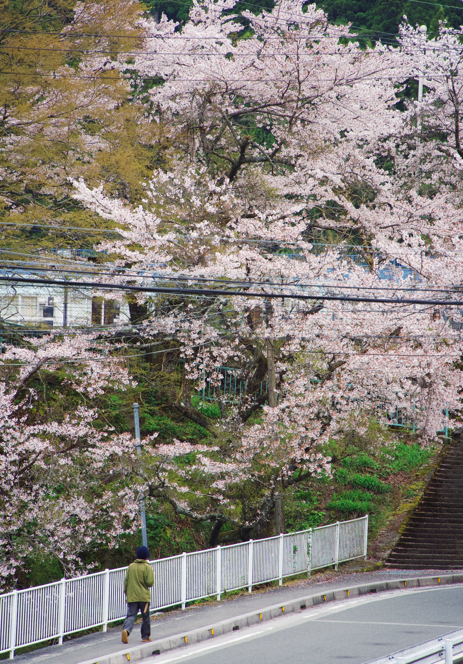 P8: 刚下过雨,从三朝温泉开车前往大山隐岐的路上,同时看到雪山和樱花