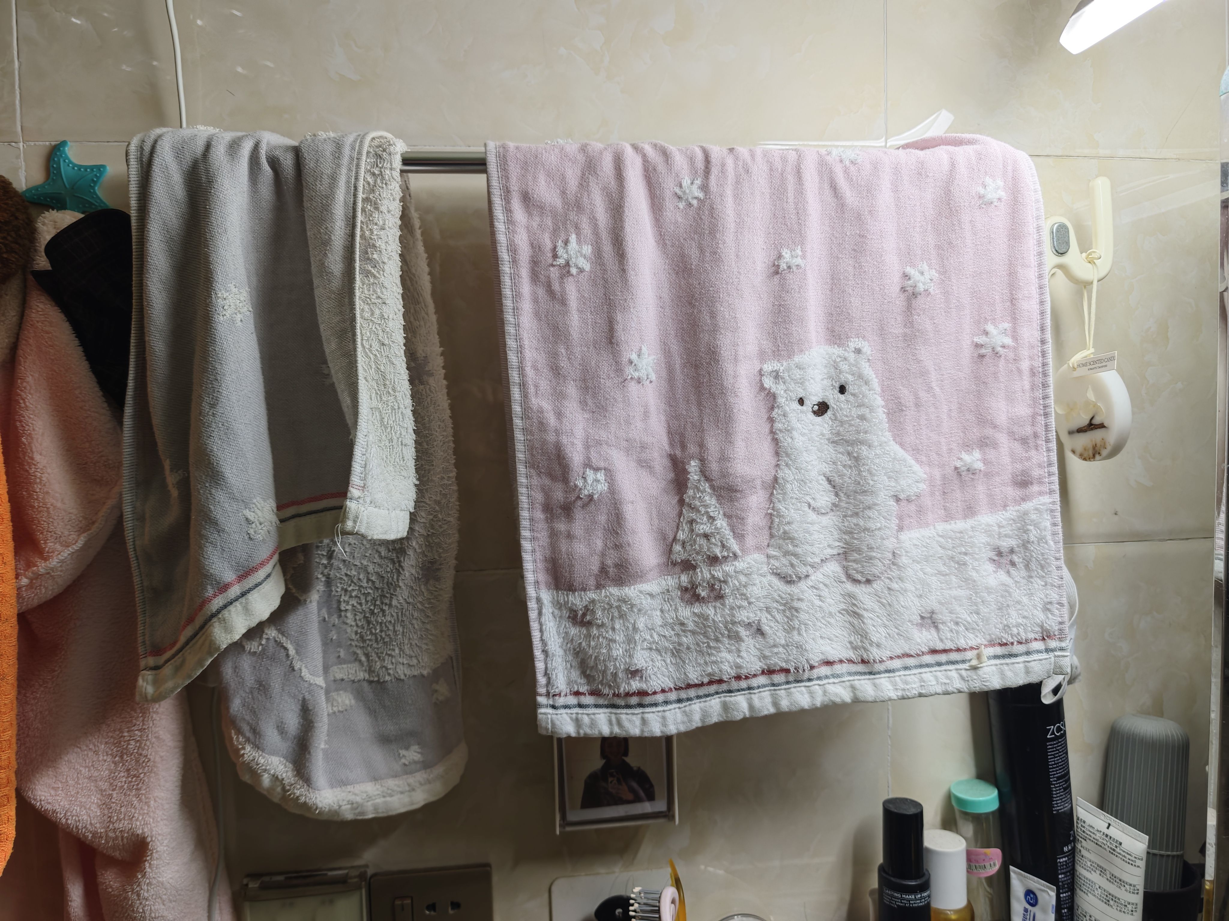 哪张是我的洗脸帕,哪张是我老婆的洗脸帕,一目了然