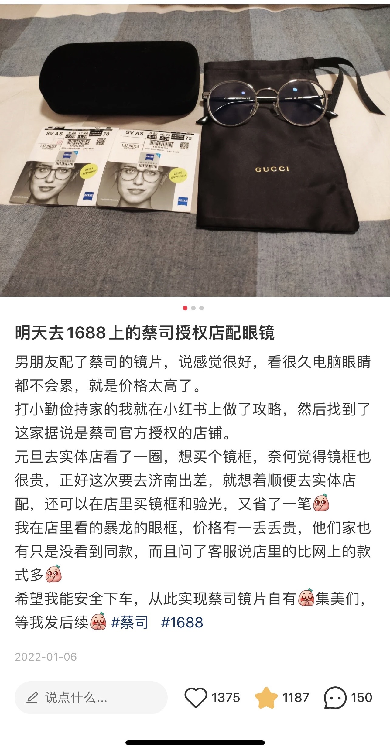 1688蔡司配镜片:好使👍就找的当地公司,下单到货之后过去现场配,安全下车🚌但我对象换的依视路的镜片很快涂层就磨花了,不行不行❌