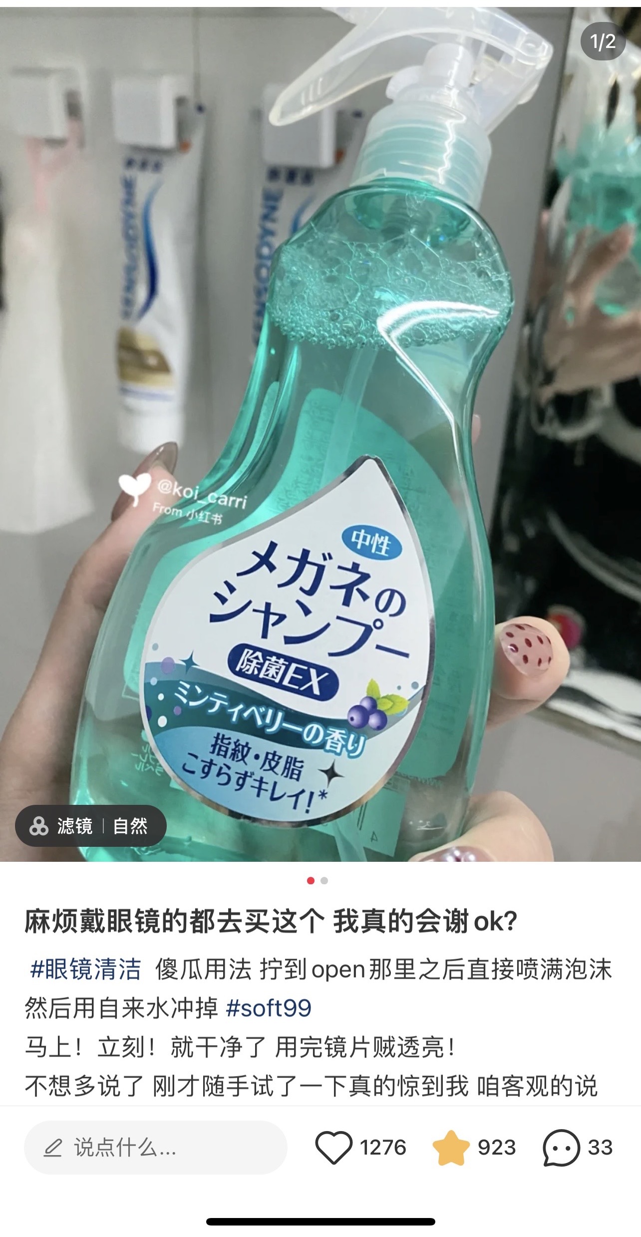 soft99眼镜清洁剂:买到依然觉得是个智商税的东西,评论也说可以洗洁精代替,但是依然很推荐大框眼镜用户使用,喷出来的是泡沫,而且确实能擦的很干净(可能赢面就是喷出的是泡沫吧……