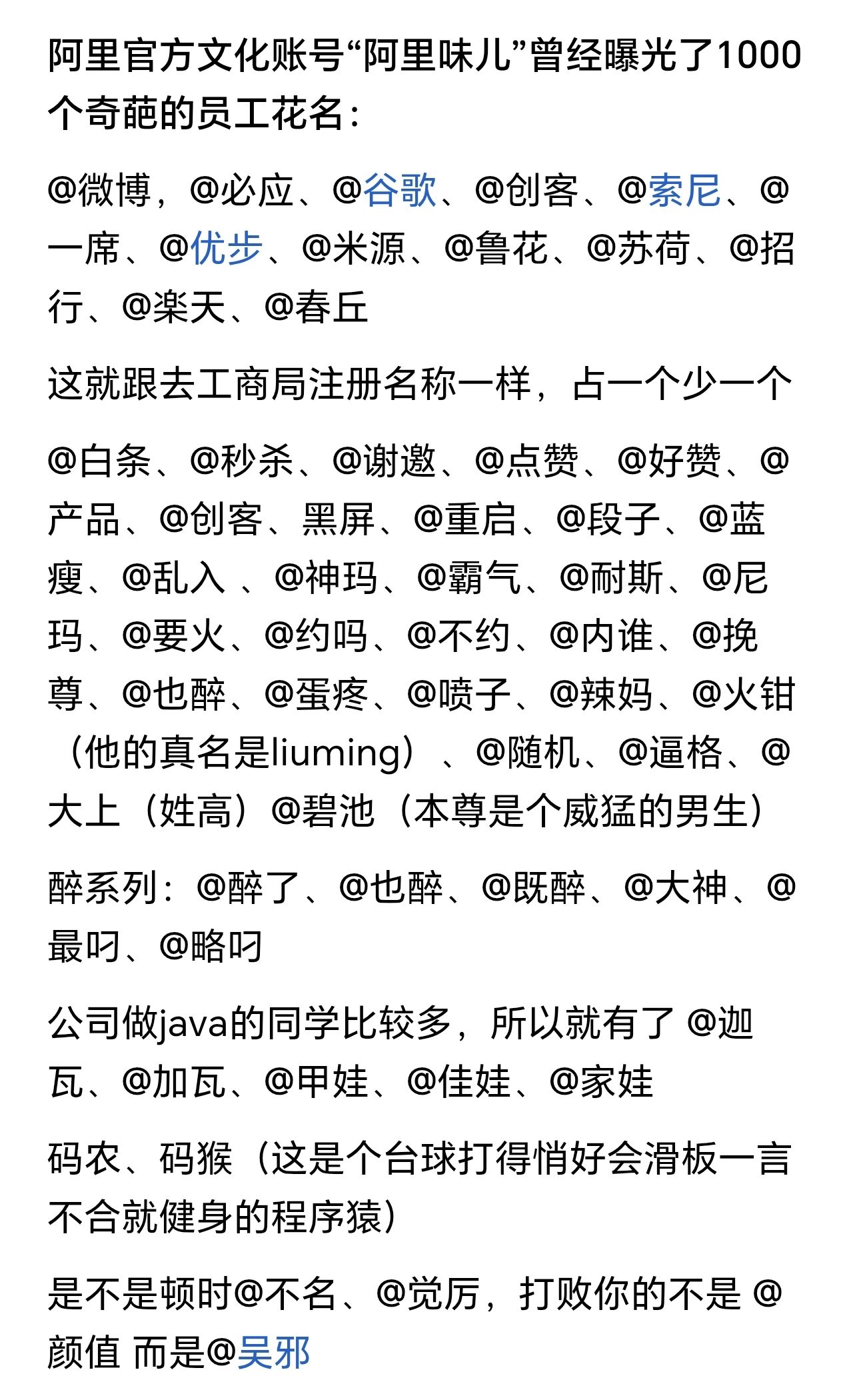 目前三字花名仅面向新员工开放,不知道会不会有人因为想抢个好花名去阿里应聘?