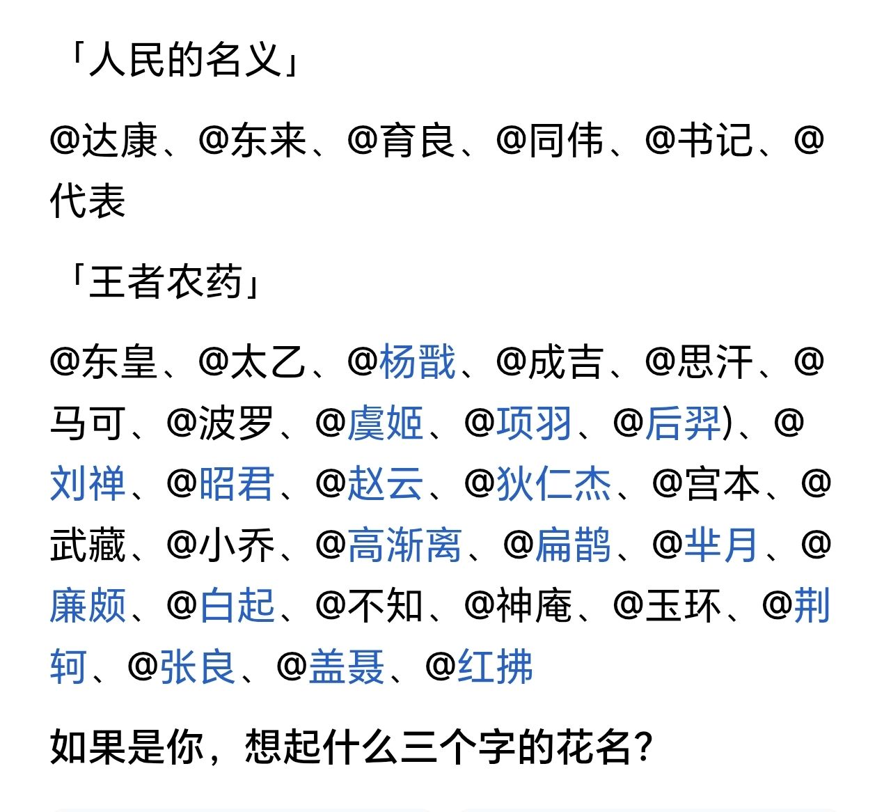 几张图是之前奇葩的花名,有的给我笑哕了