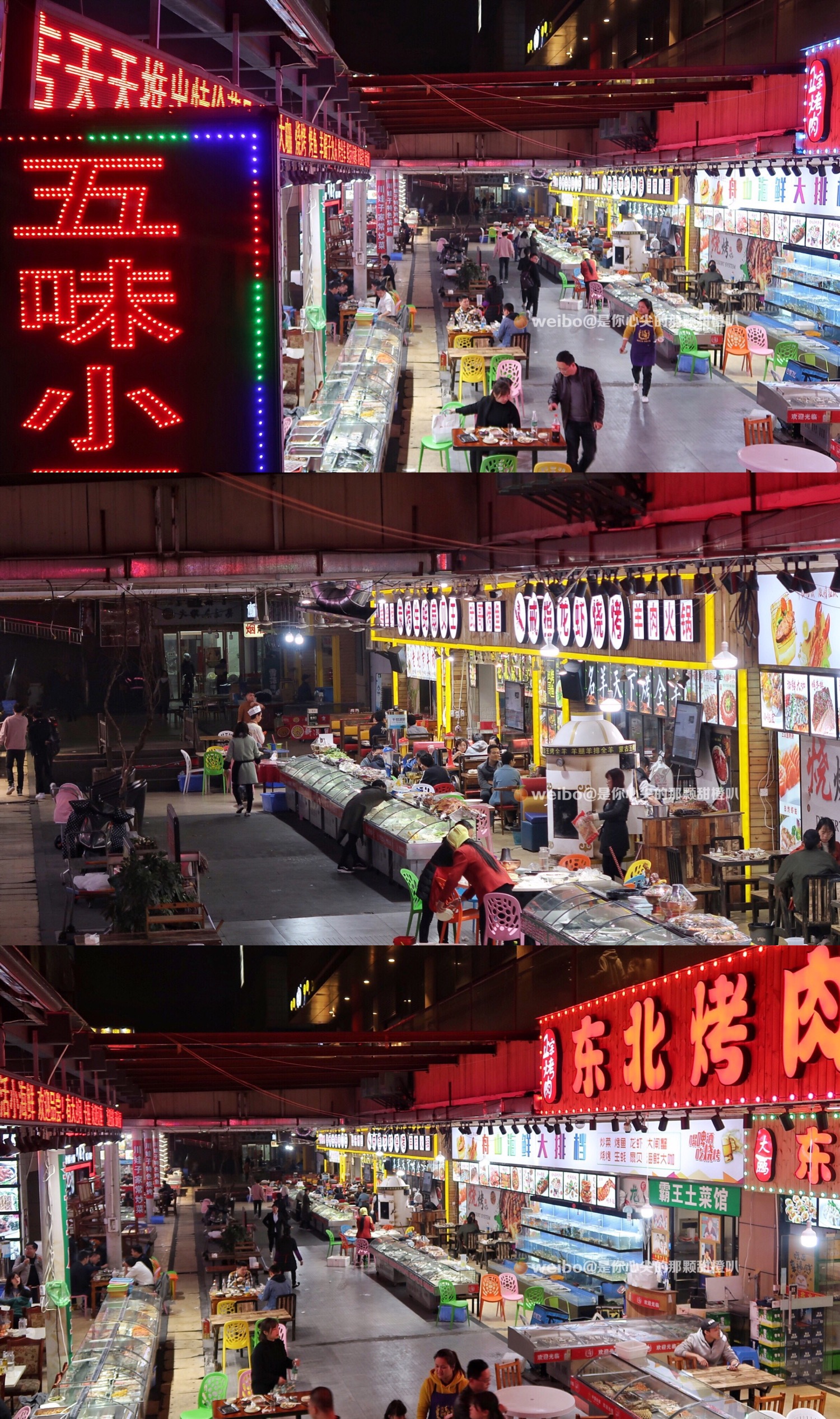 从一楼只看得到一个大招牌和一缕缕白烟,殊不知底下还有一家家相隔紧密的海鲜烧烤大排档。