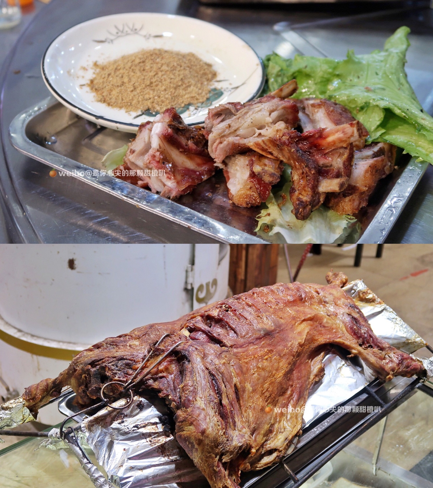 烤羊排是最后上的,外皮烤的脆香脆香的,羊排鲜嫩多汁,只可惜实在是吃不下了,不然我都想一整盘解决光了。