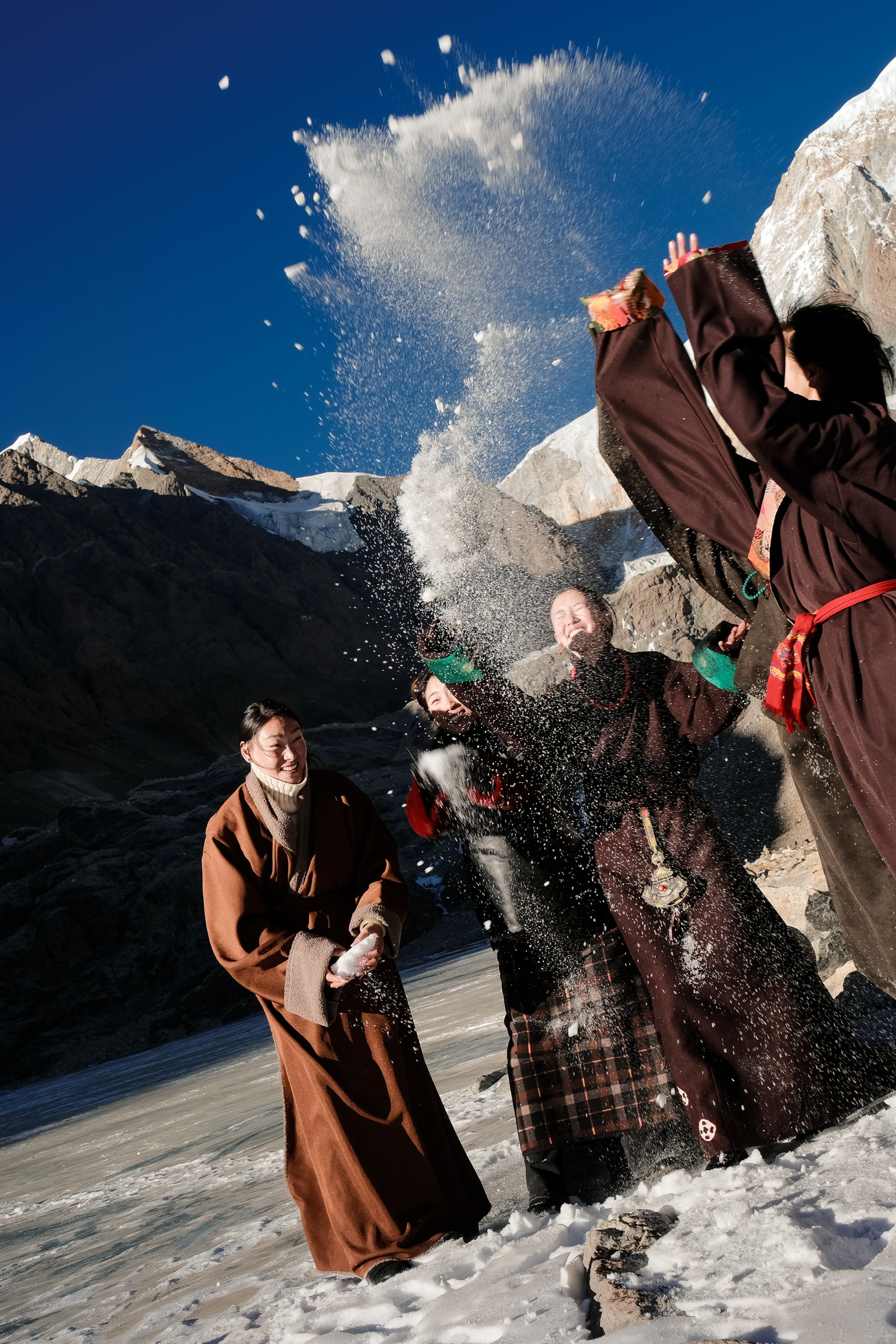 品牌方的团队也是全女性构成。在海拔 5500 米的高原,氧气稀薄,环境严酷,但大家硬是扛下了所有。没有抱怨,没有退缩,吊着一口气,只为尽可能完美的瞬间。