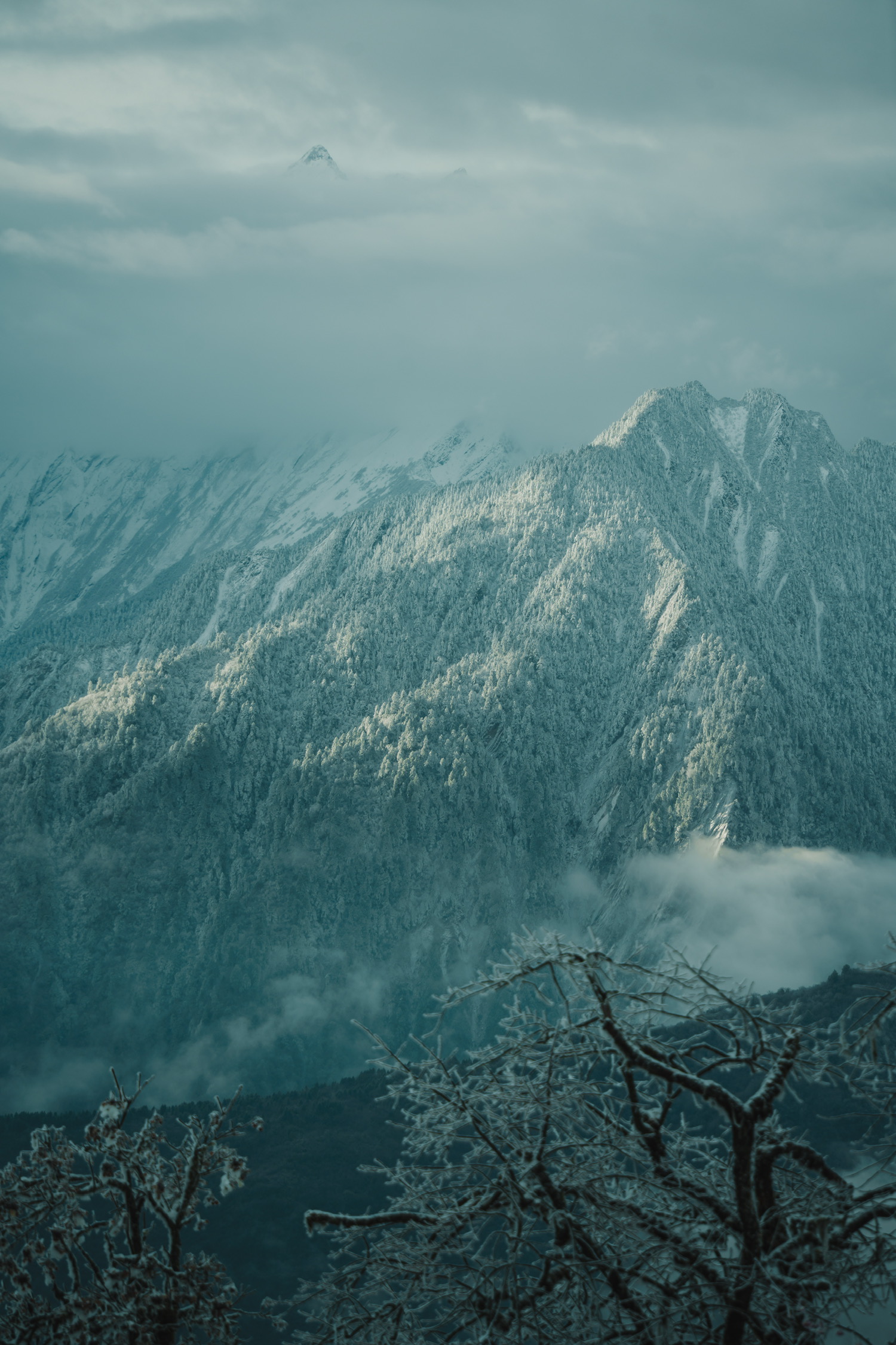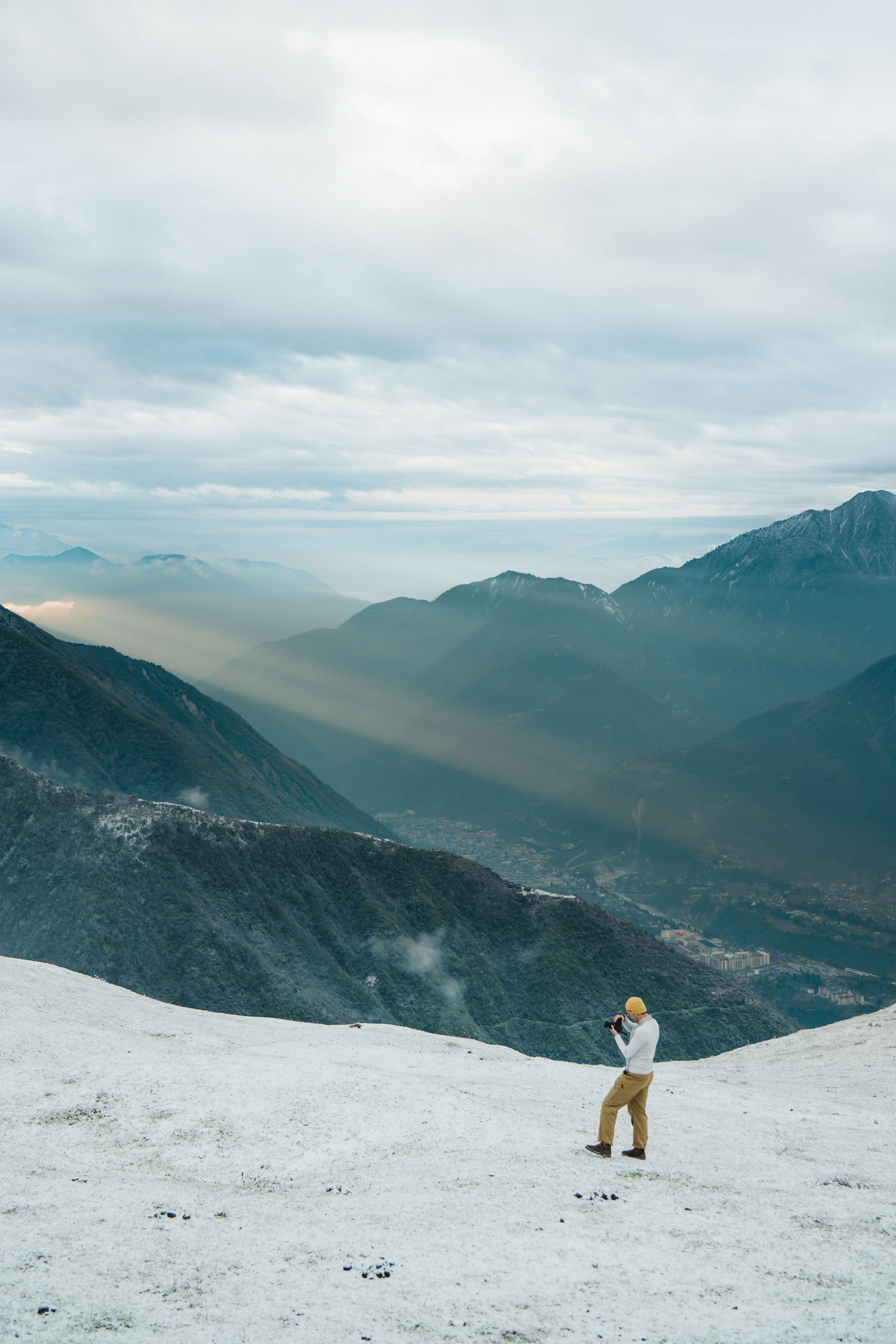 站在海拔7500+m贡嘎雪山下,一束晨光穿透云雾云照在身上——