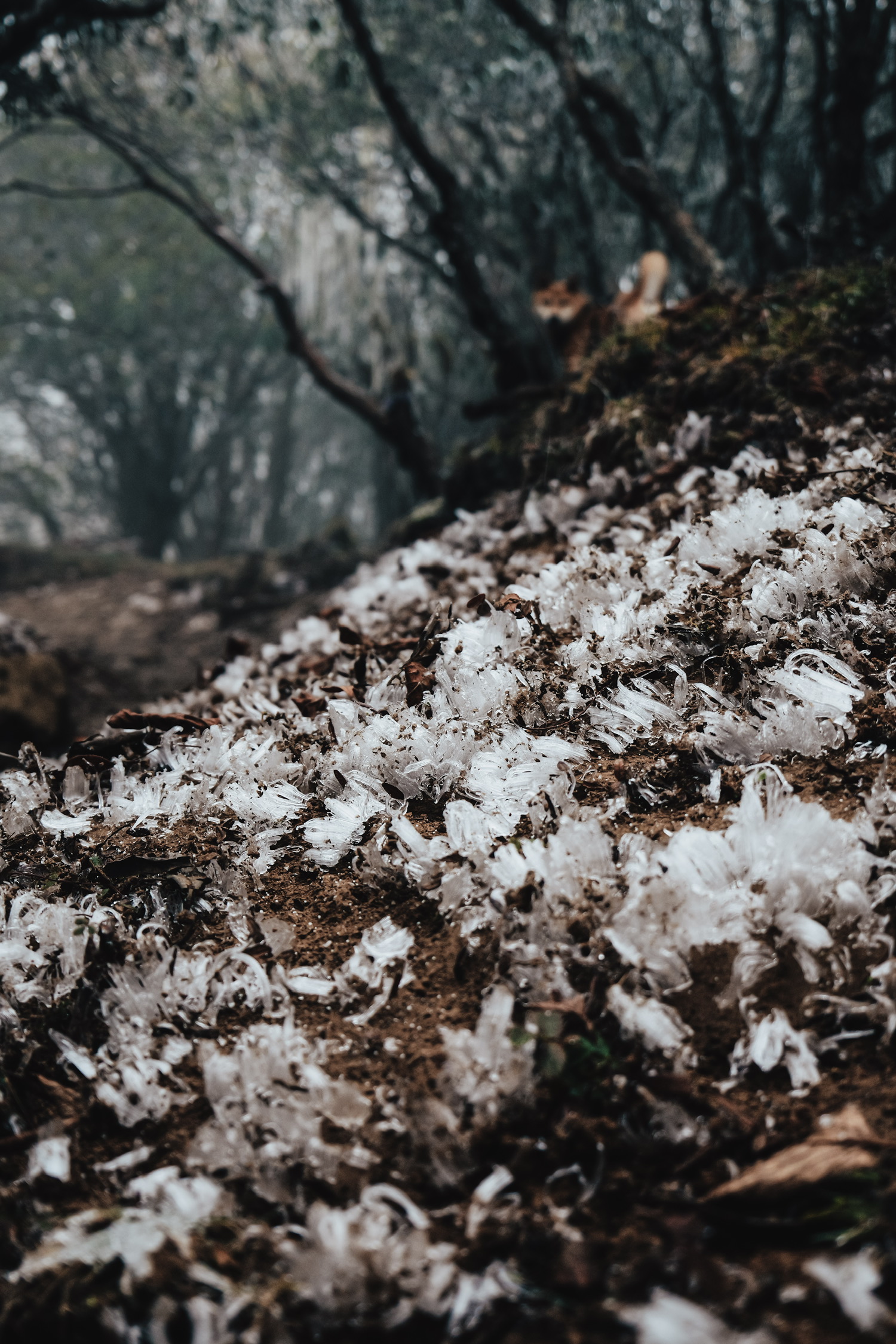 冰渣掉落地面开出了花