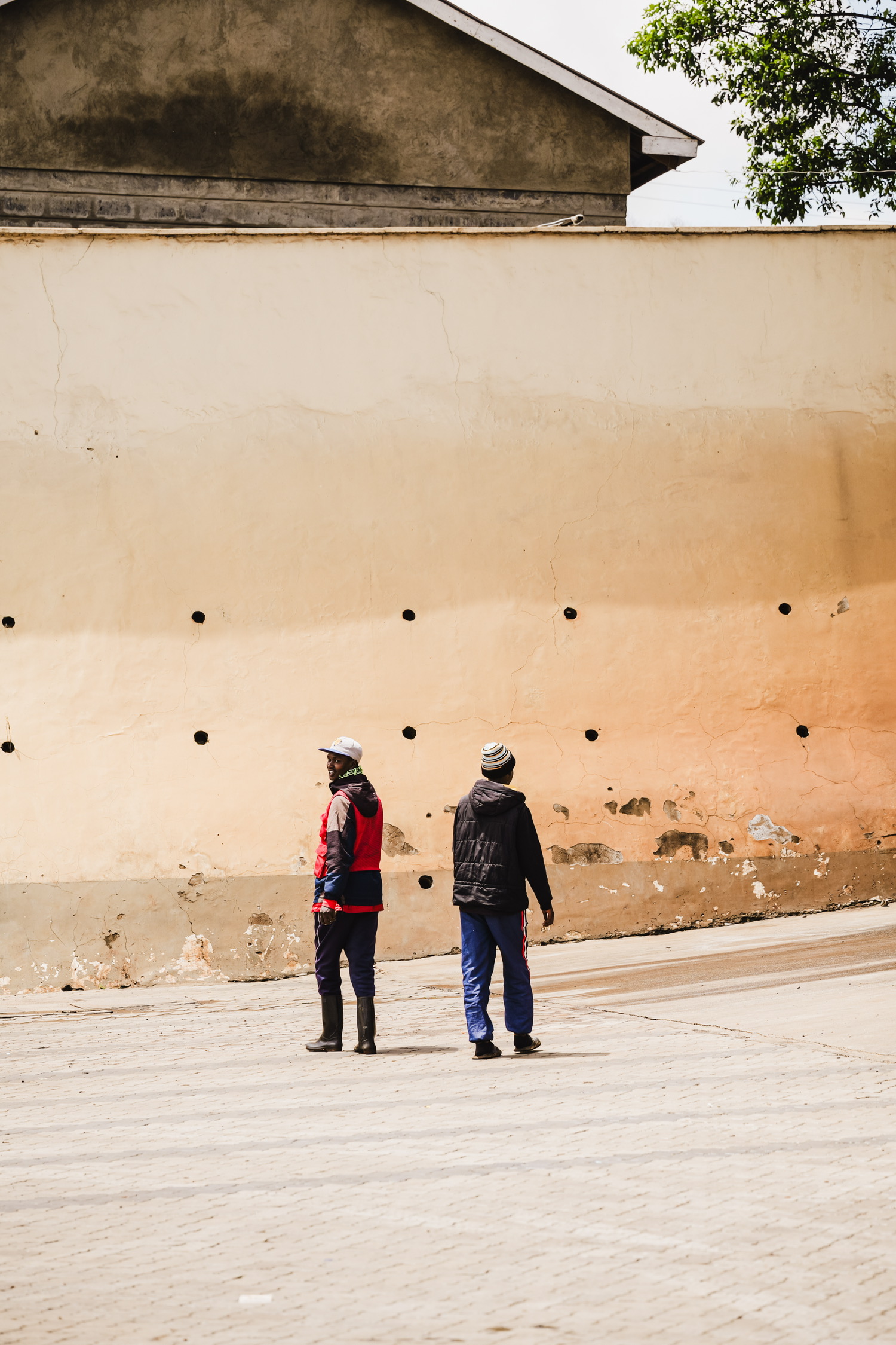但一墙之隔外,就是生活线下的脏乱贫民窟。