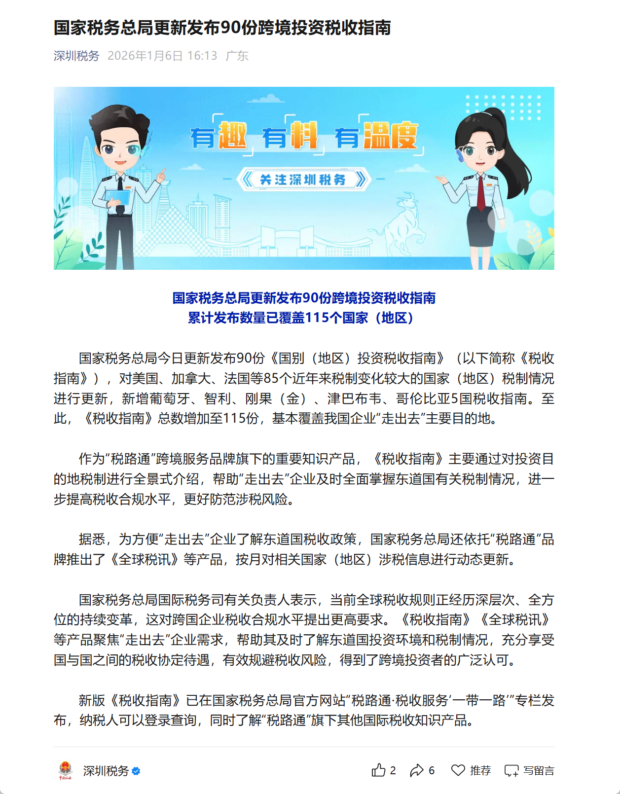 国家税务总局今日更新发布90份《国别(地区)投资税收指南》,有需自取