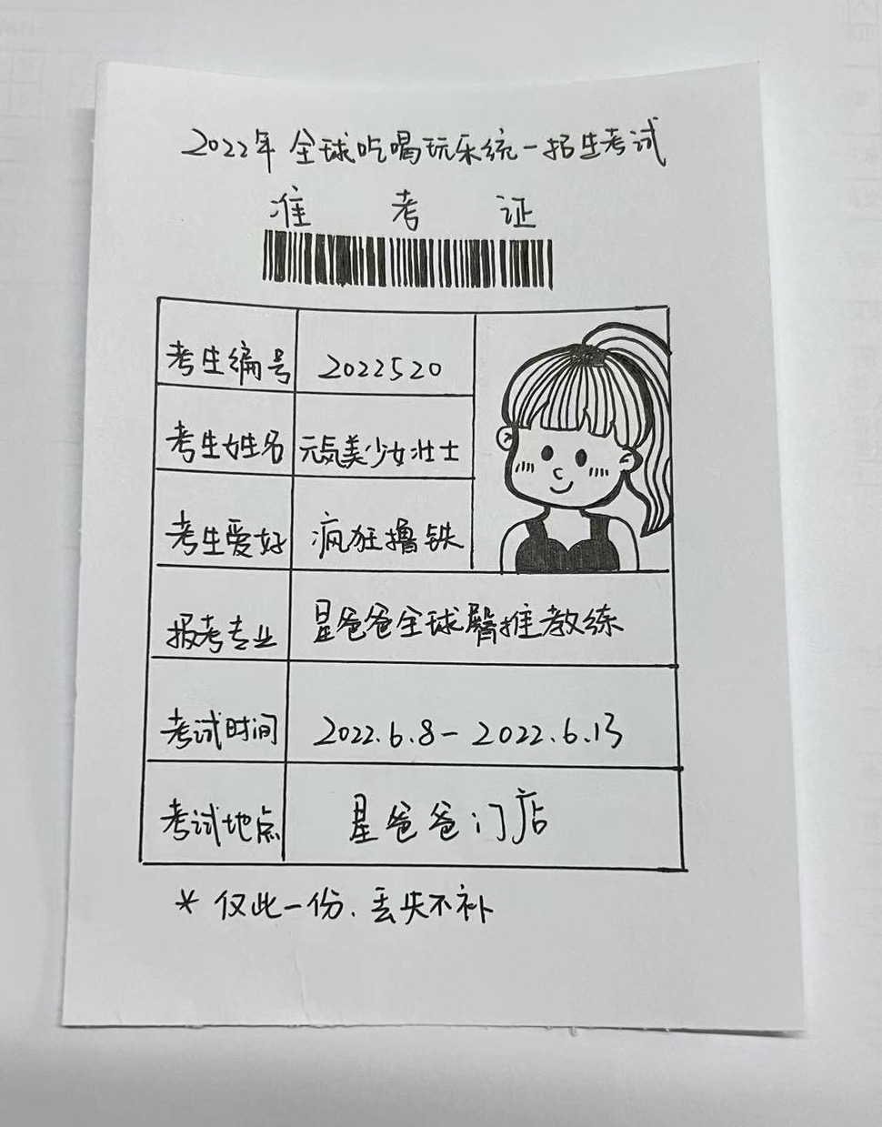 会员还给我画了一张准考证~真的开心~