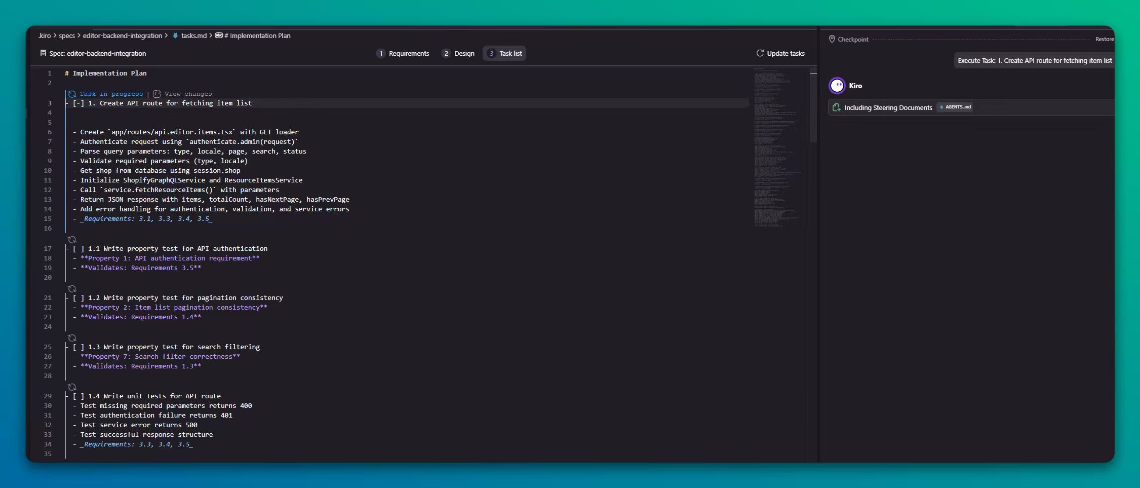相较于cursor或者其他code agents自带的plan模式,明显任务需求理解和执行更细。比如这个过程中,它自己会在requirements中要求自己遍历user story,然后还要求自己写出测试脚本,来验证自己写得对不对。