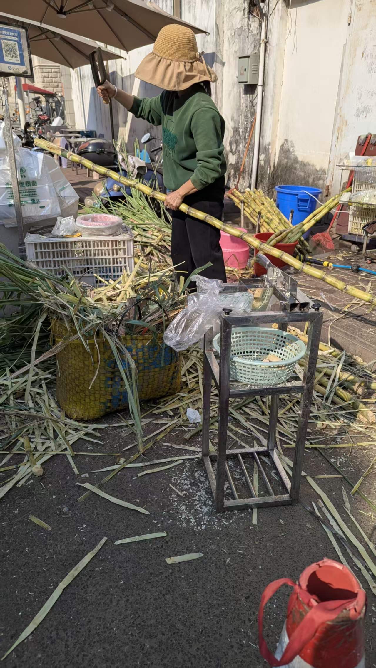 买甘蔗,老板说就他家这里跑来了蜜蜂🐝