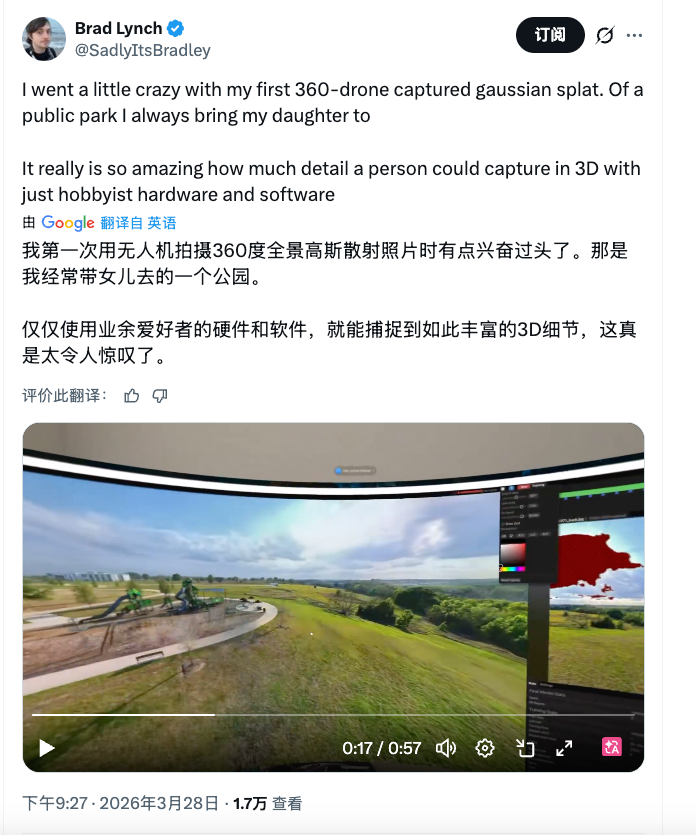 Brad测试了一套影翎A1玩3d高斯的工作流,感觉如果能用AI把它包装成开箱即用的状态的话可玩性很高啊