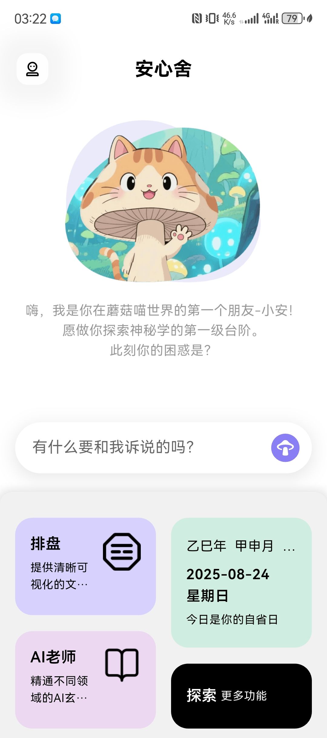 安心舍 - 蘑菇喵,ai 国学心理学app,全平台上线啦,欢迎大家提反馈意见