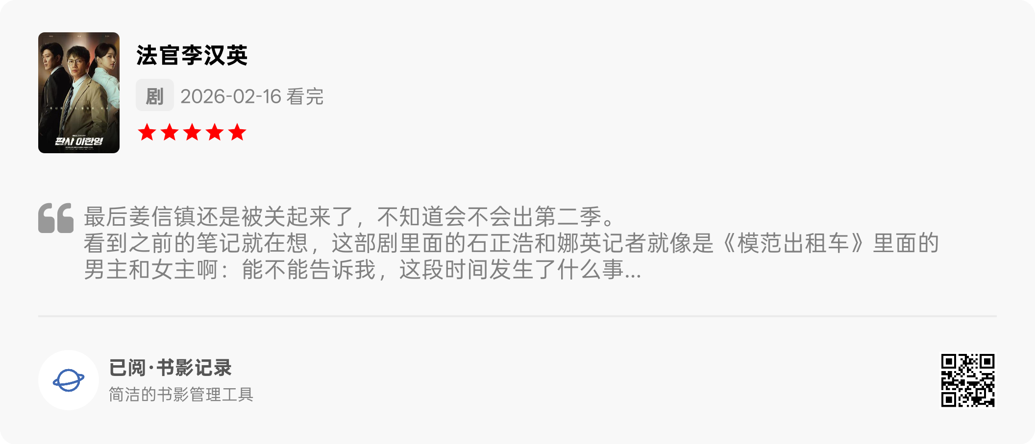 法官李汉英 看完