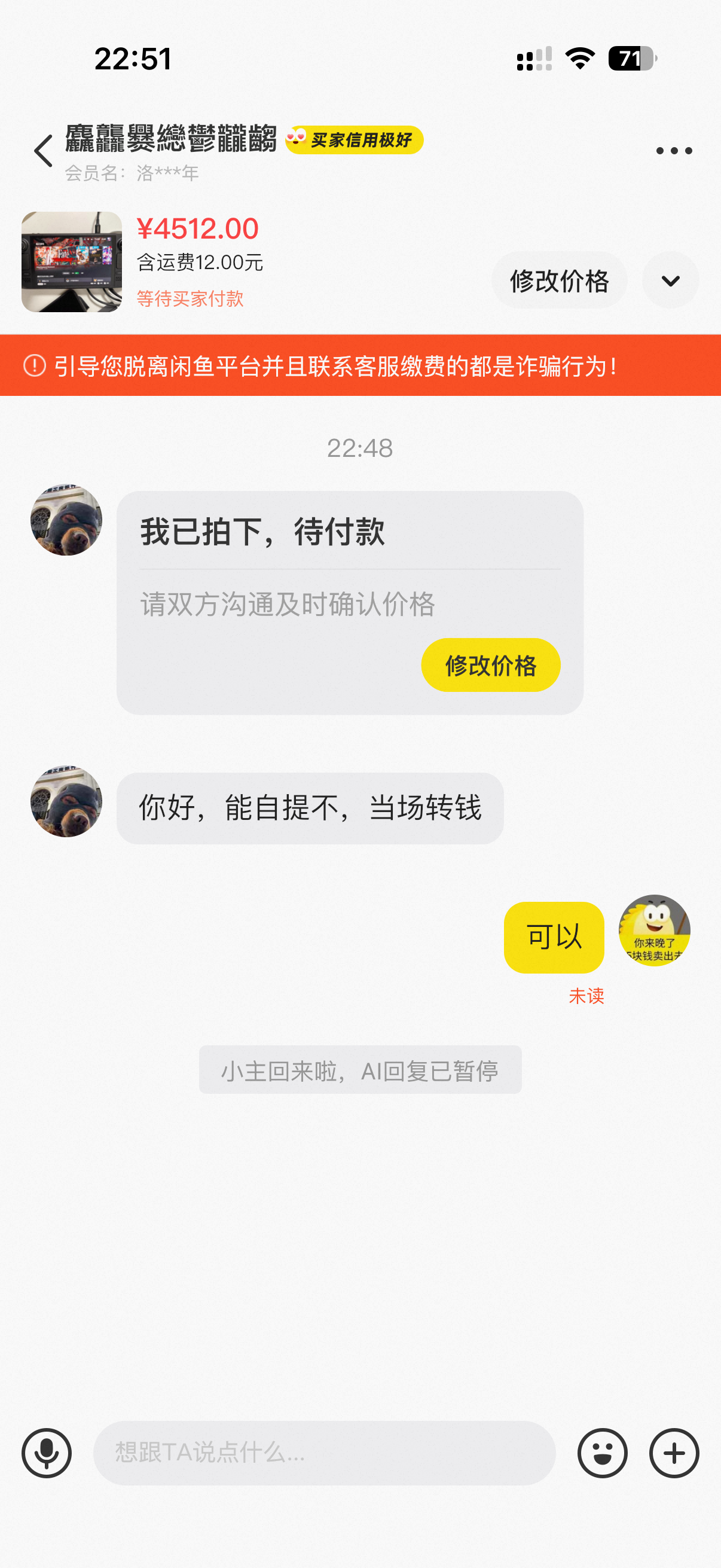 发了个Steamdeck OLED二手转卖,被0s拍下,感觉是机贩子的脚本拍的,第一次遇到这种情况。