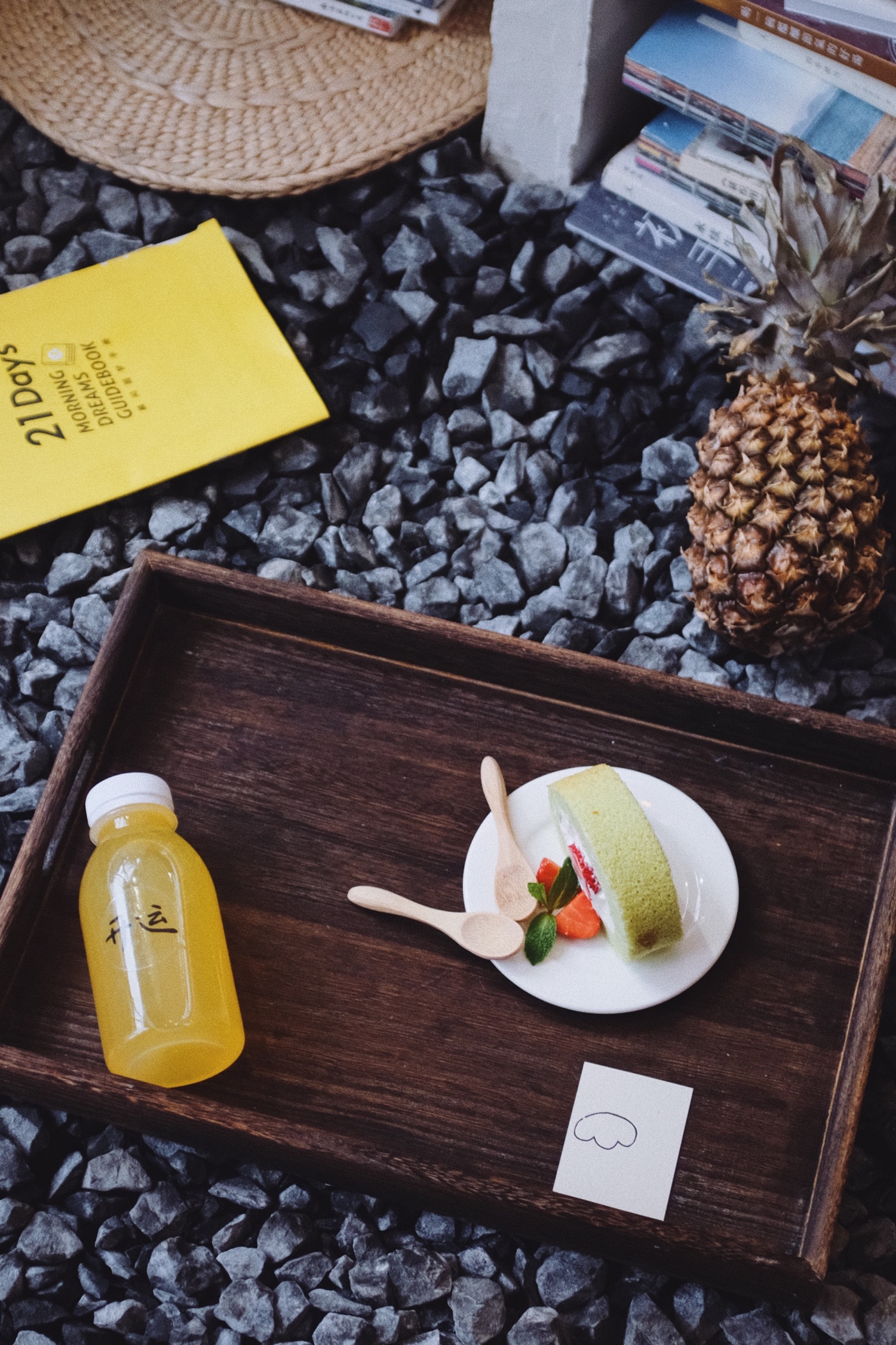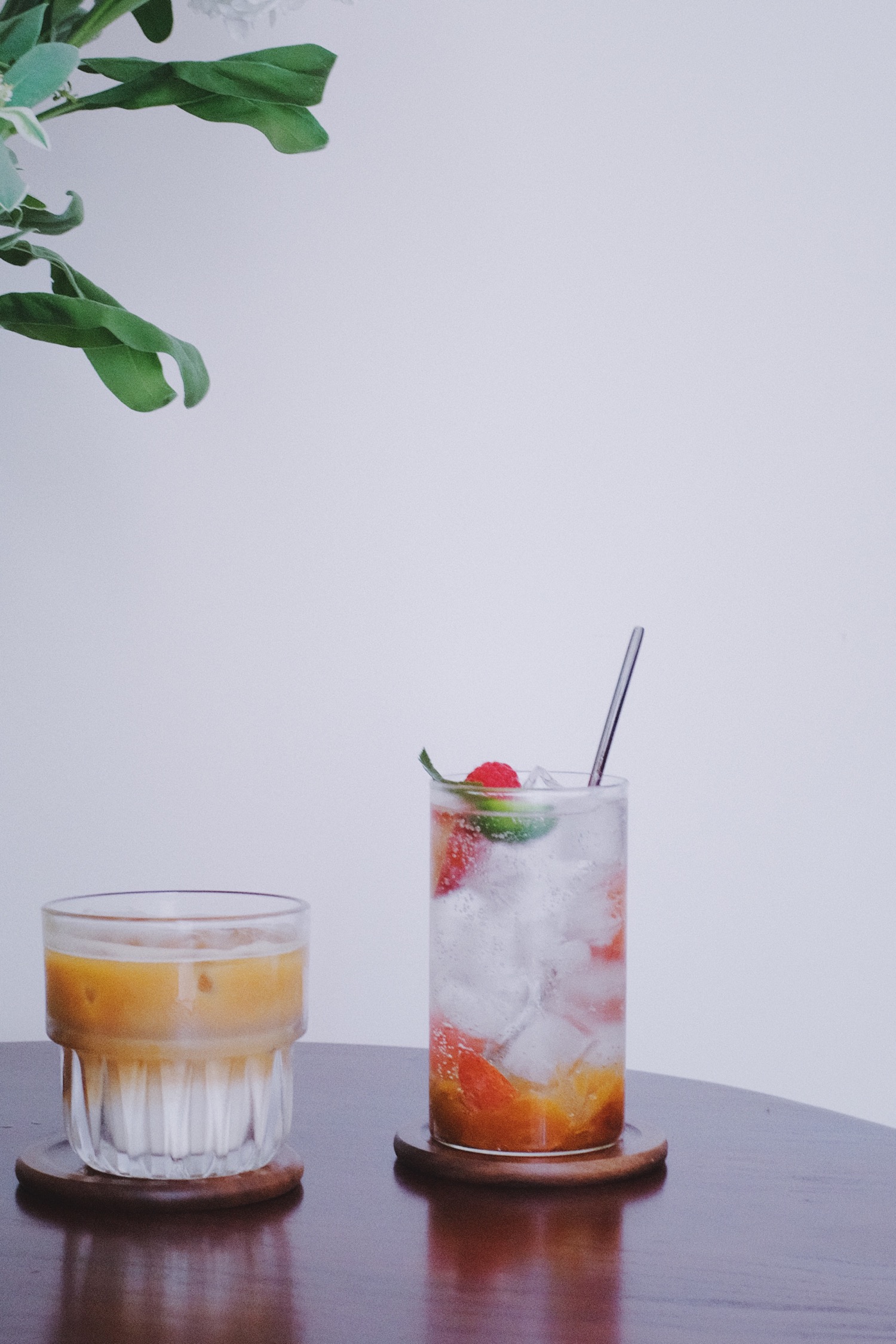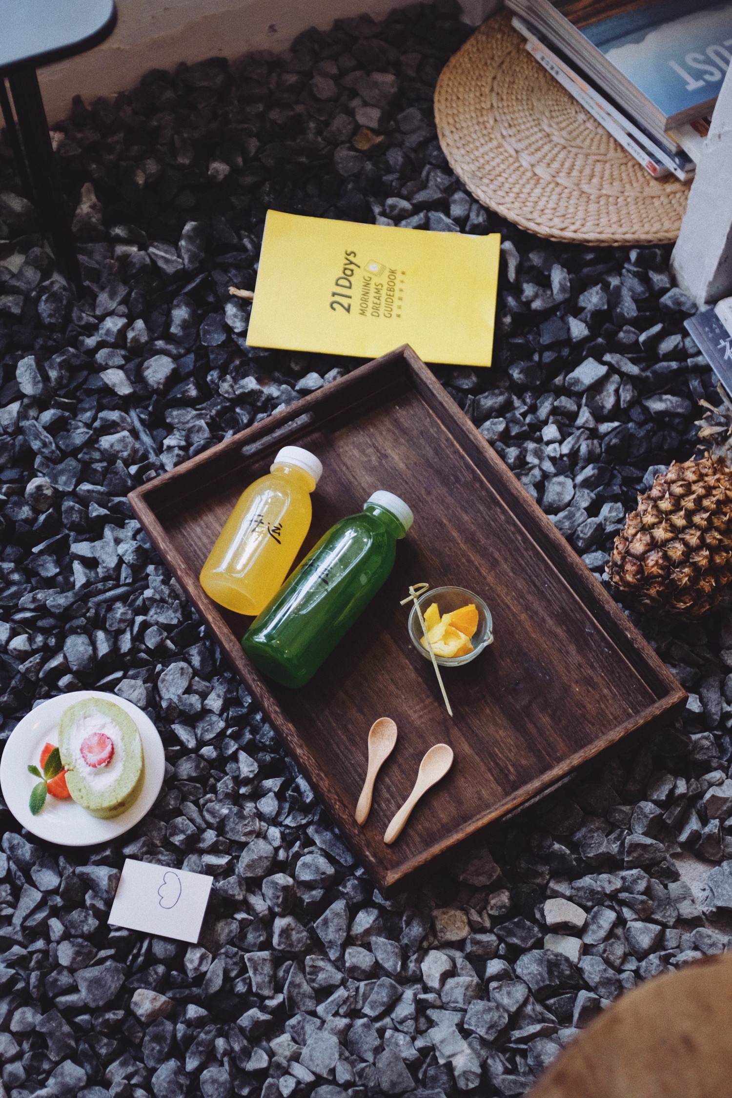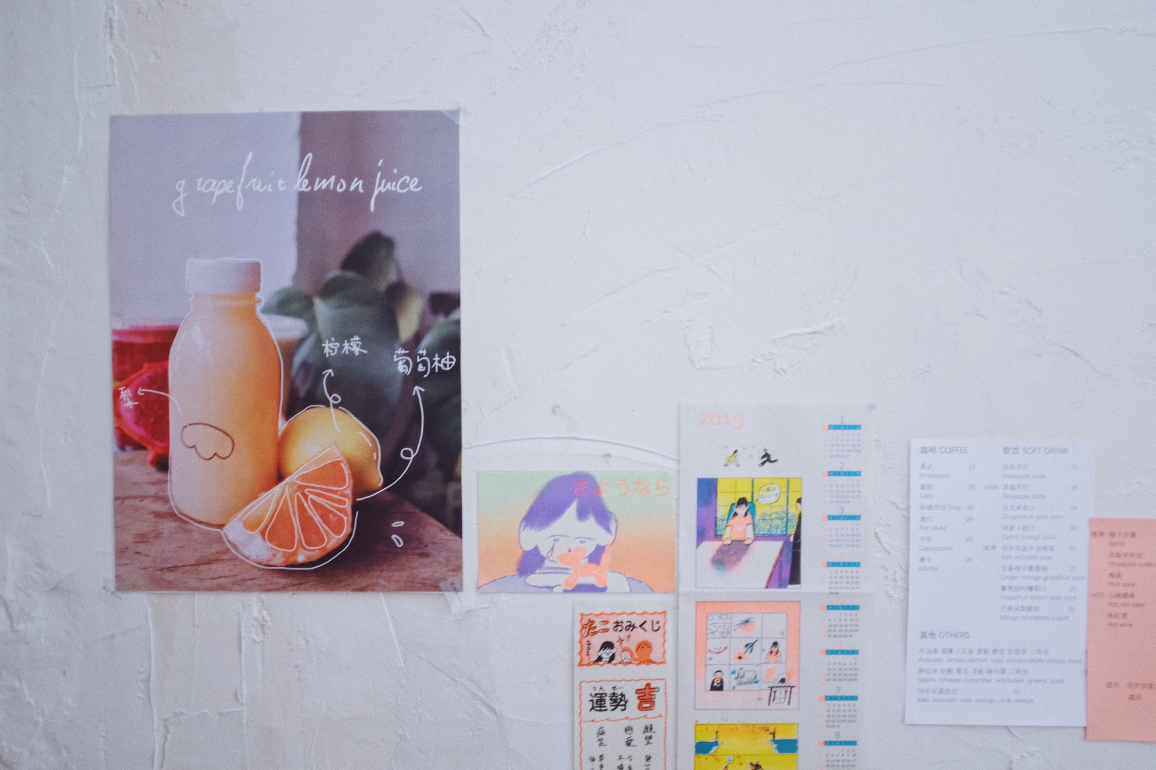 鲜榨果汁都很健康而且颜色很好看,透明杯上写着开运