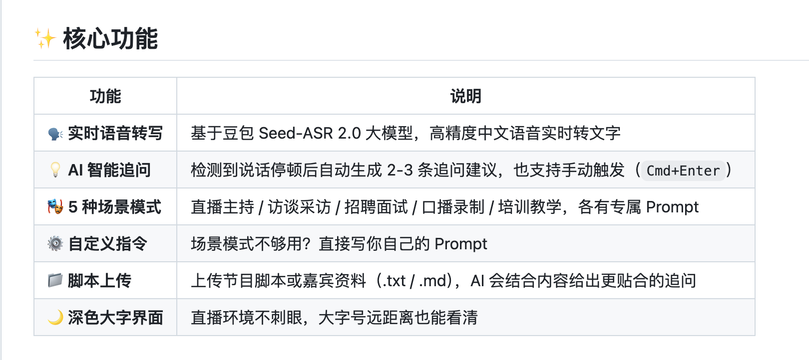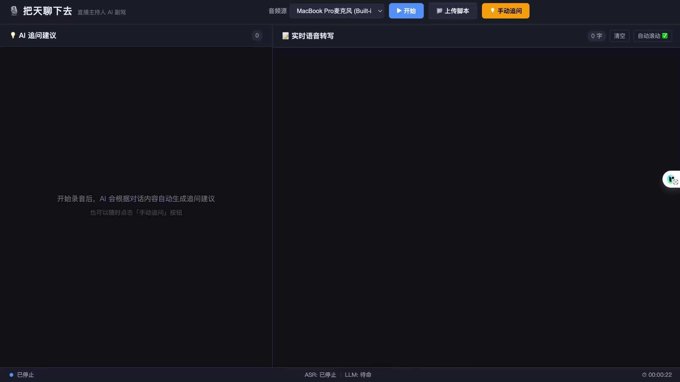 所以就想做一个AI助手:屏幕右侧实时转录语音文字,左侧AI自动建议提问方向。聊到哪儿,它就跟到哪儿。