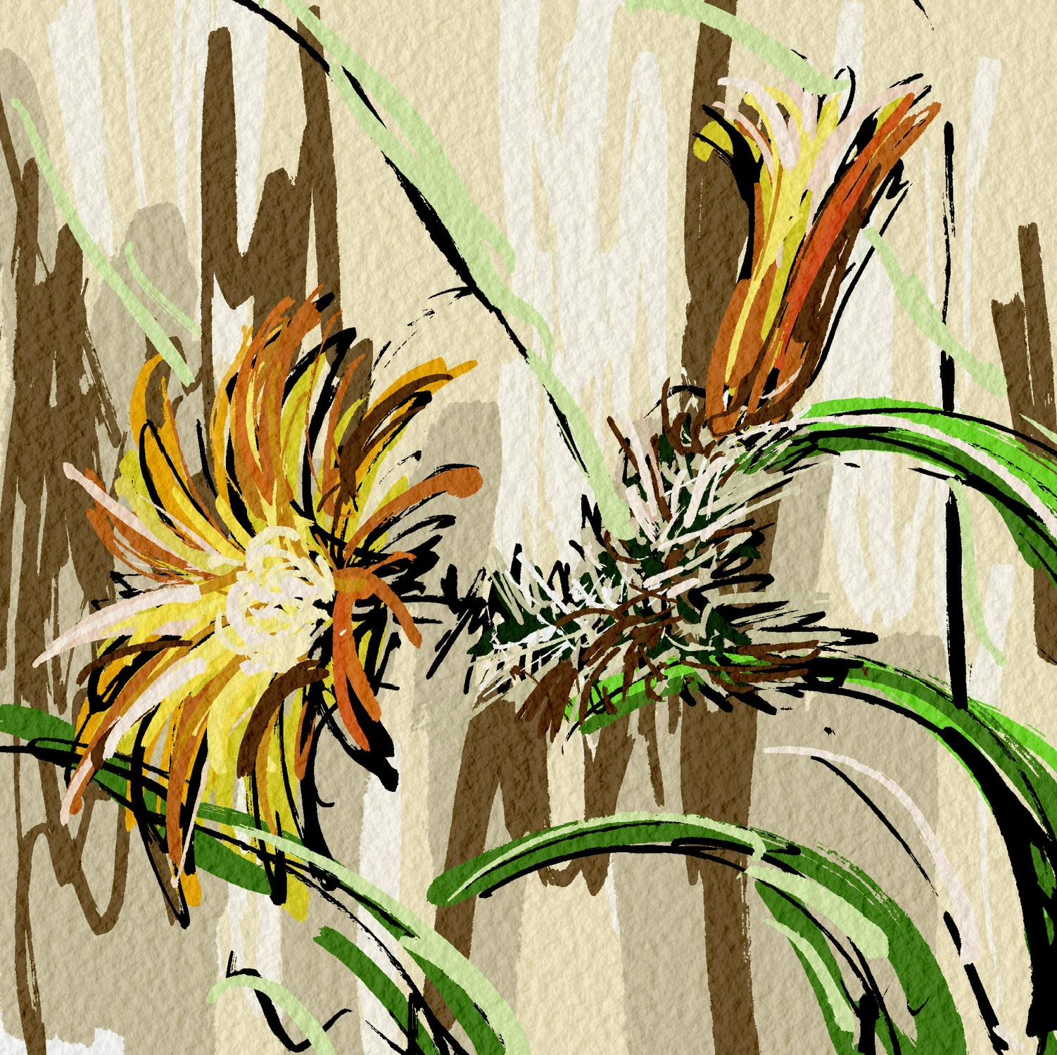 翅子掌属(Pterocactus)在仙人掌家族中比较独特的是花朵长在茎上的样子使得整个茎像是一个长花梗。花直接开在茎的末端,使茎停止了生长,产生新的分枝,直到花结果为止。