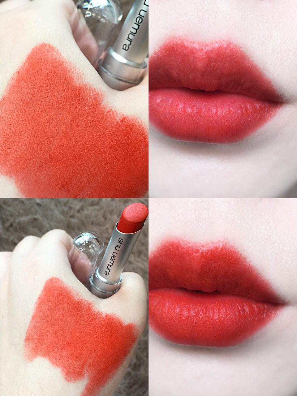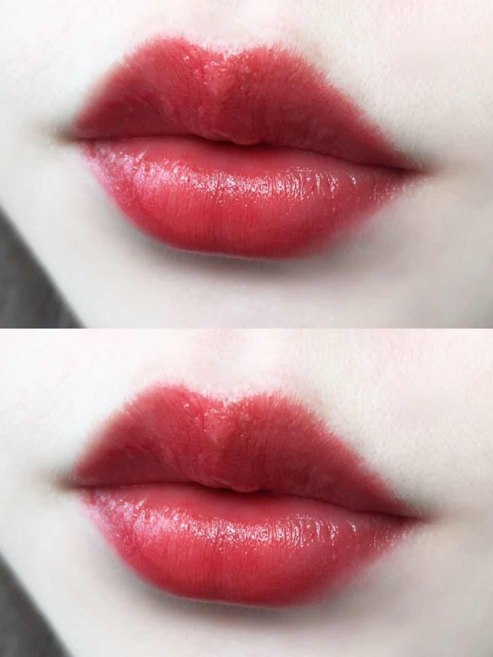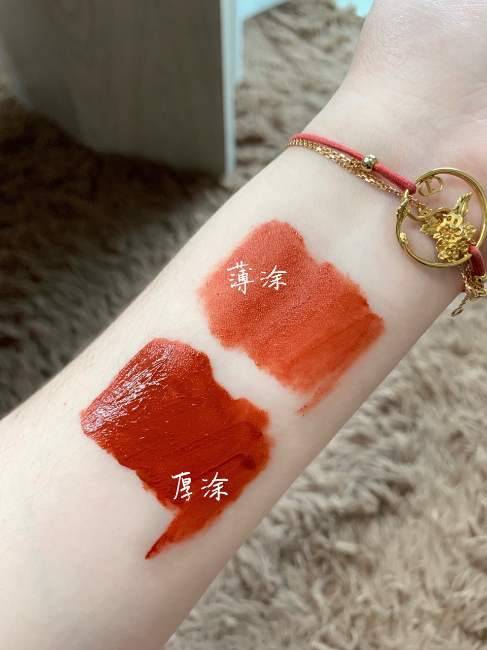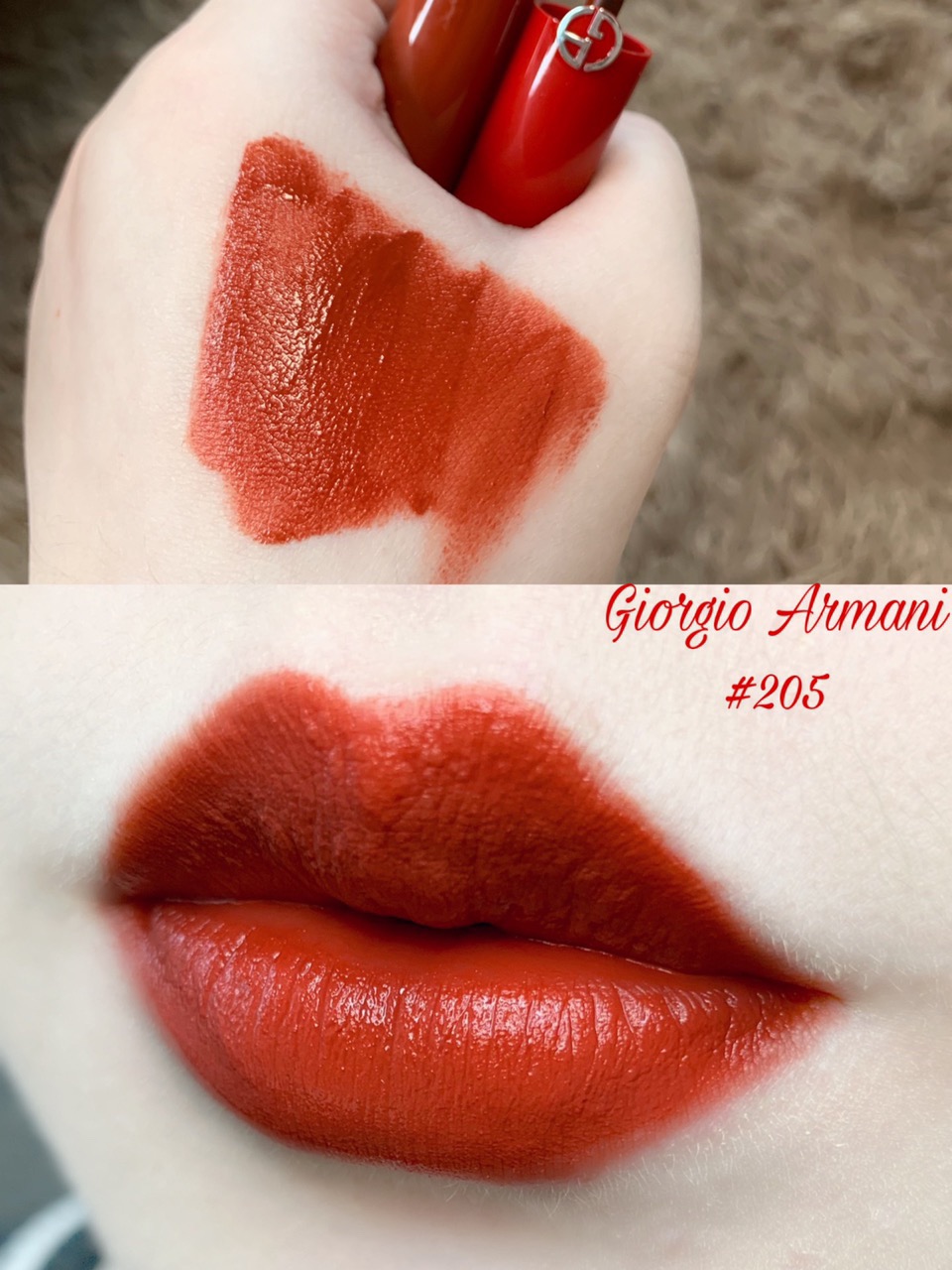 涂上嘴的颜色会比手上的试色稍红一些,中和了一些橘调,更贴合自身的肤色,超级好看!不管唇色深浅冷暖,这支都很搭!