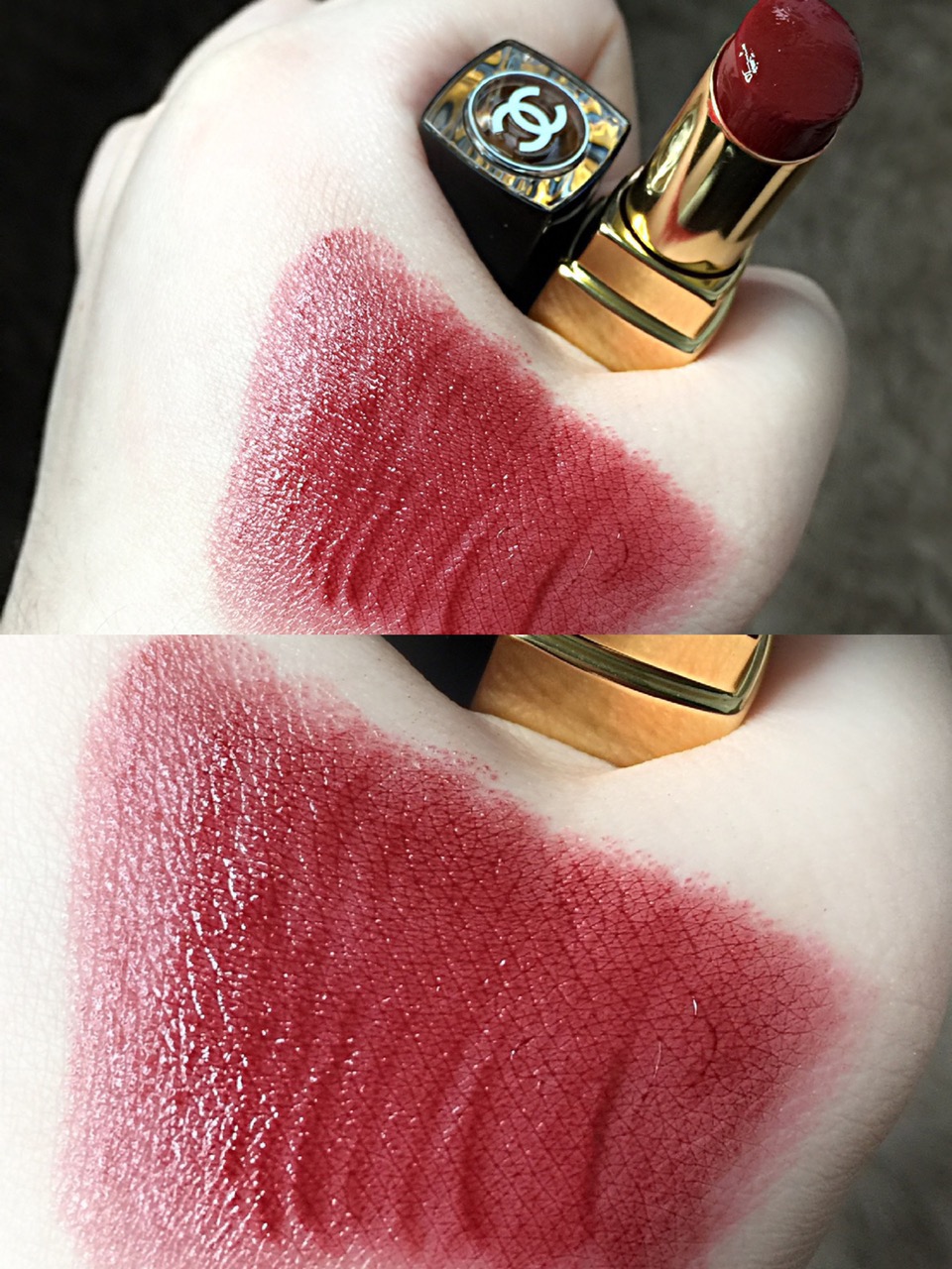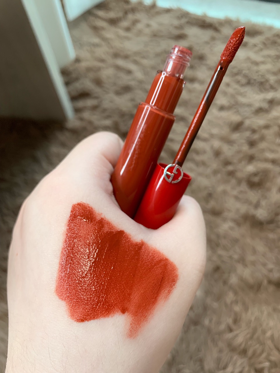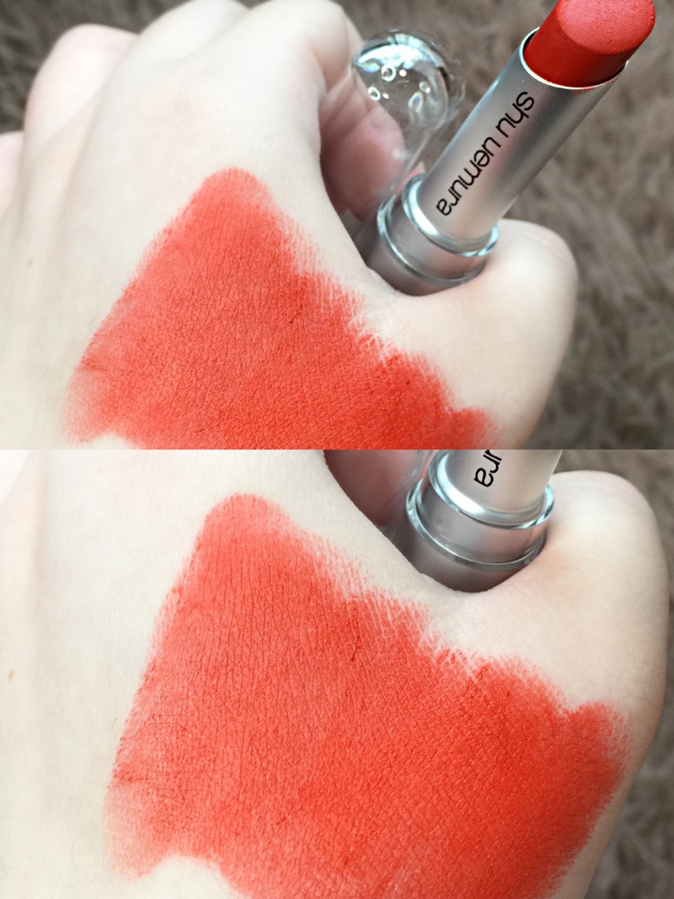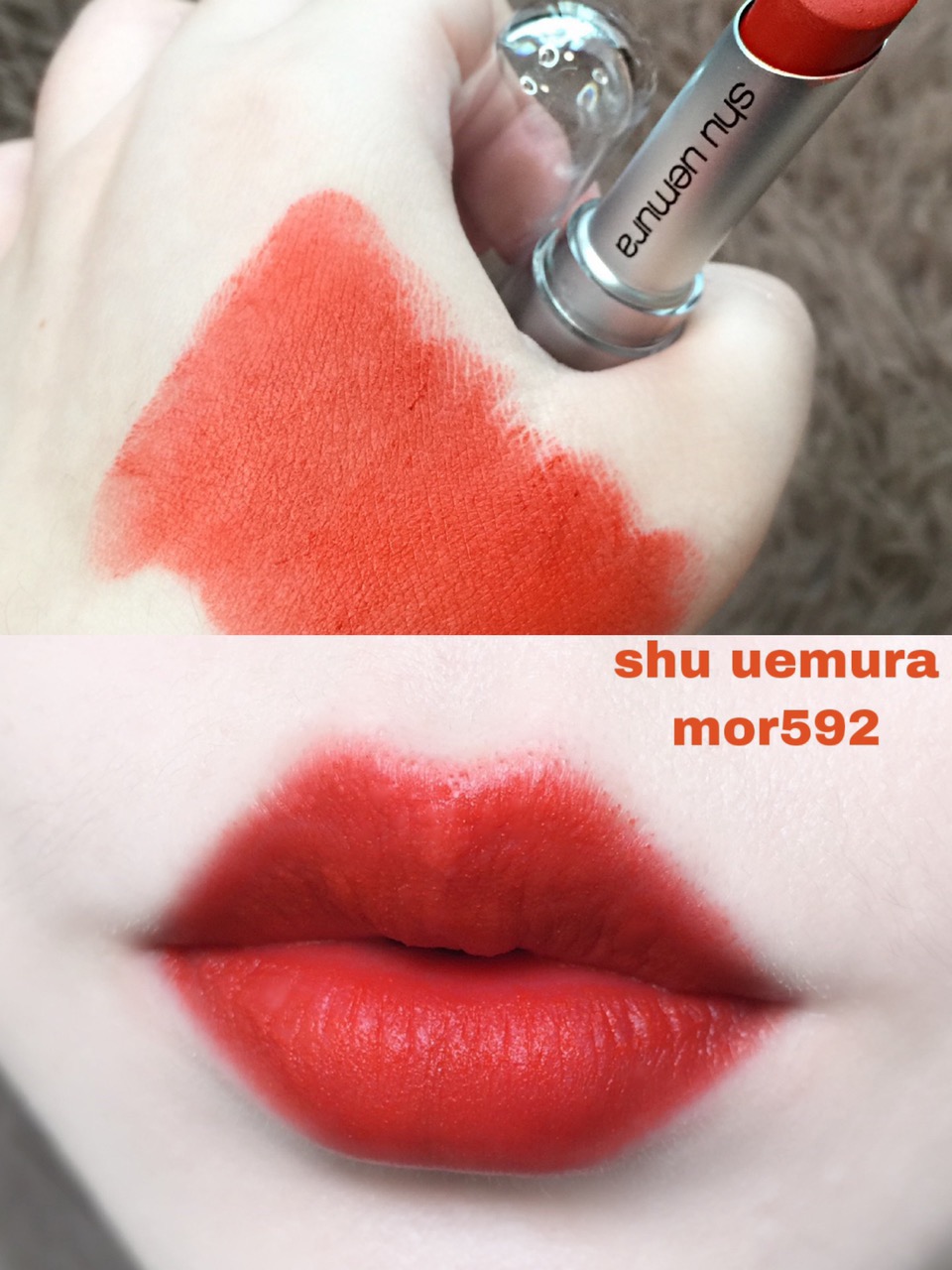 涂上嘴的颜色会比手上的试色稍红一些,中和了一些橘调,更贴合自身的肤色,超级好看!不管唇色深浅冷暖,这支都很搭!