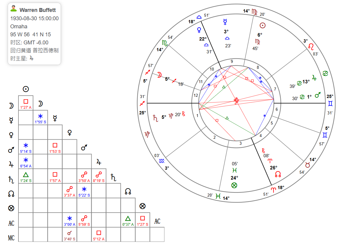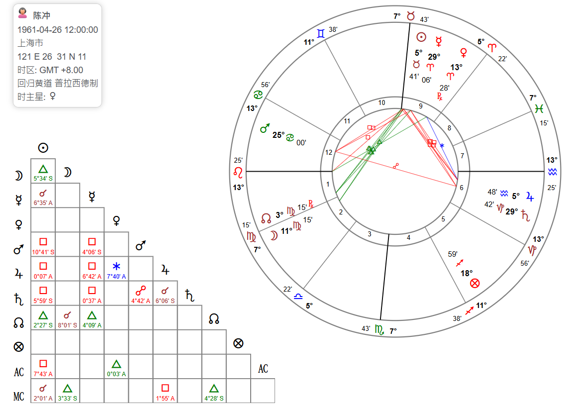 🔺第2、6、10宫宫首星座的守护星、宫内行星