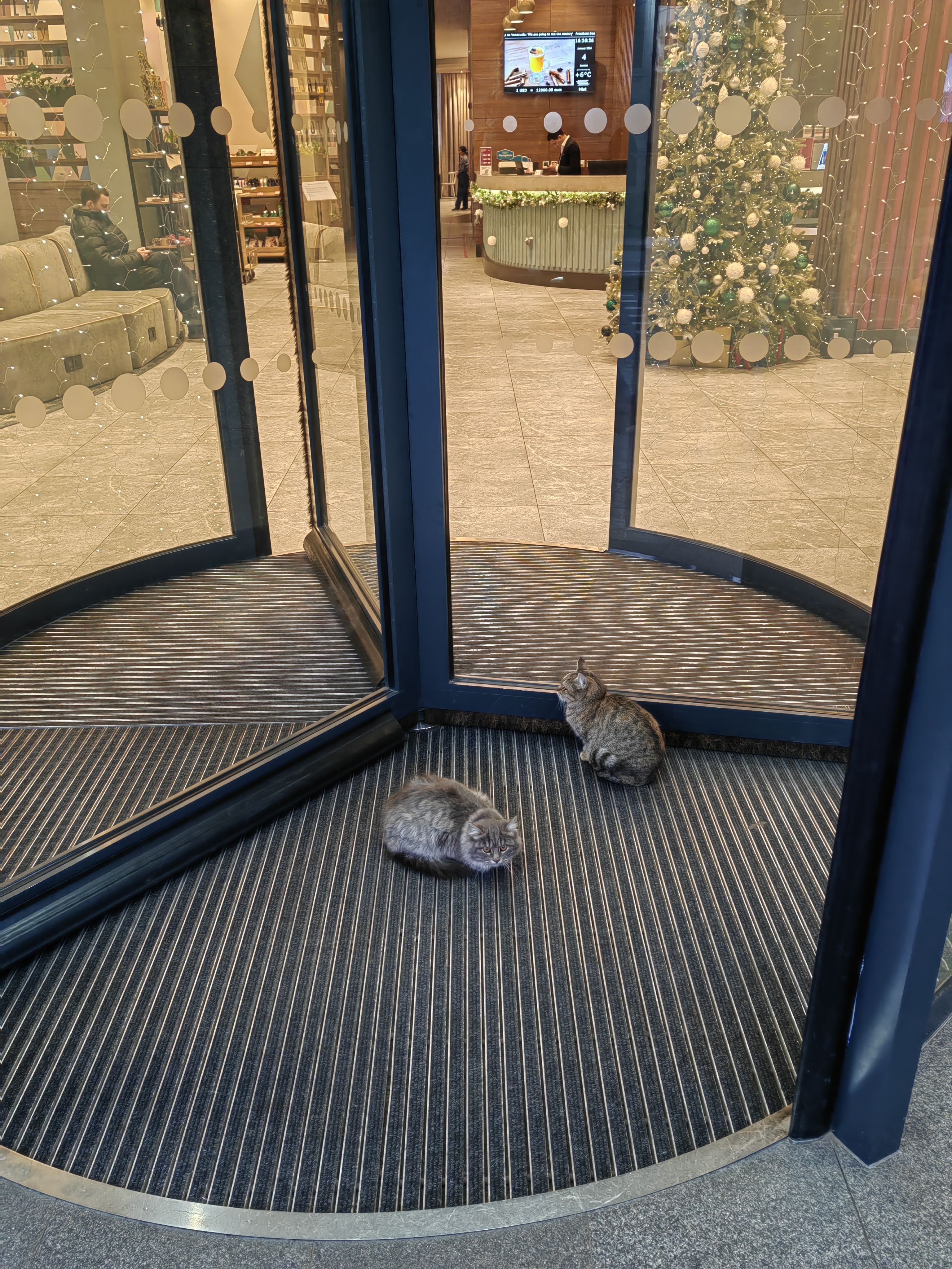 今日降温,酒店门口长猫了。