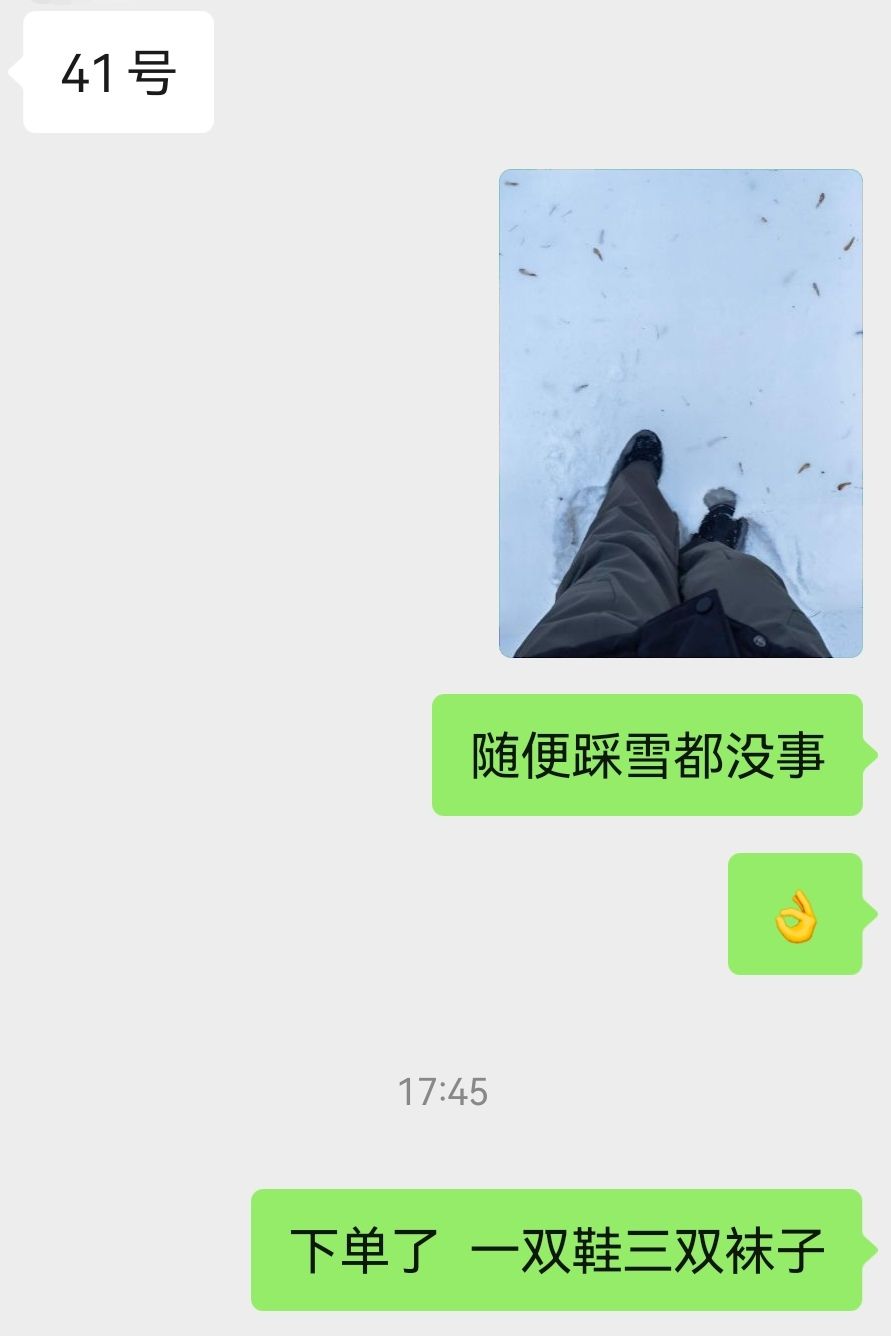 这次买的鞋和袜子都经受住了西伯利亚的考验,非常好,今天下单给我爸也都买了同款。