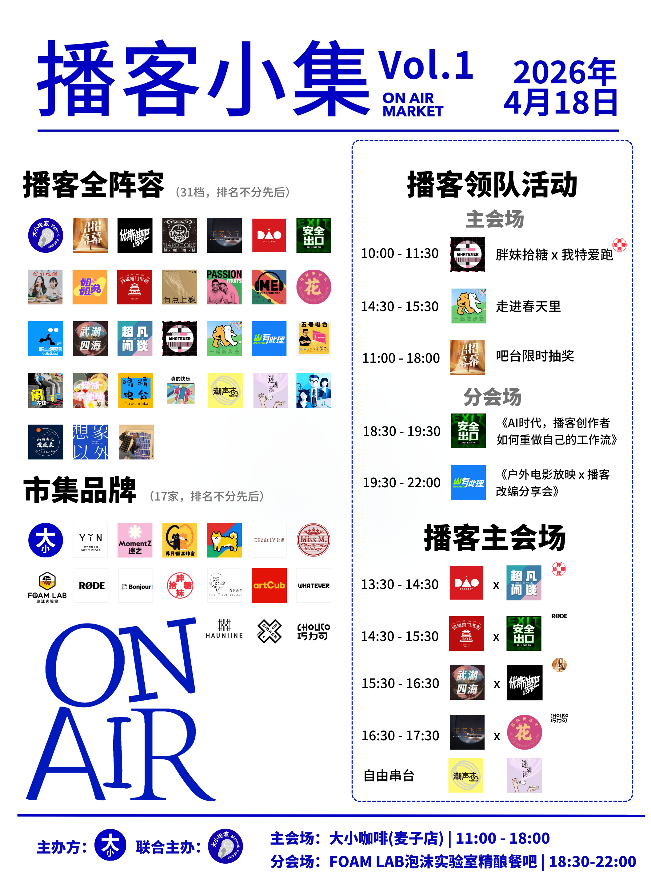 “播客小集,一个以播客为媒介的生活市集,让我们在真实的线下感受播客的热情和美好。”