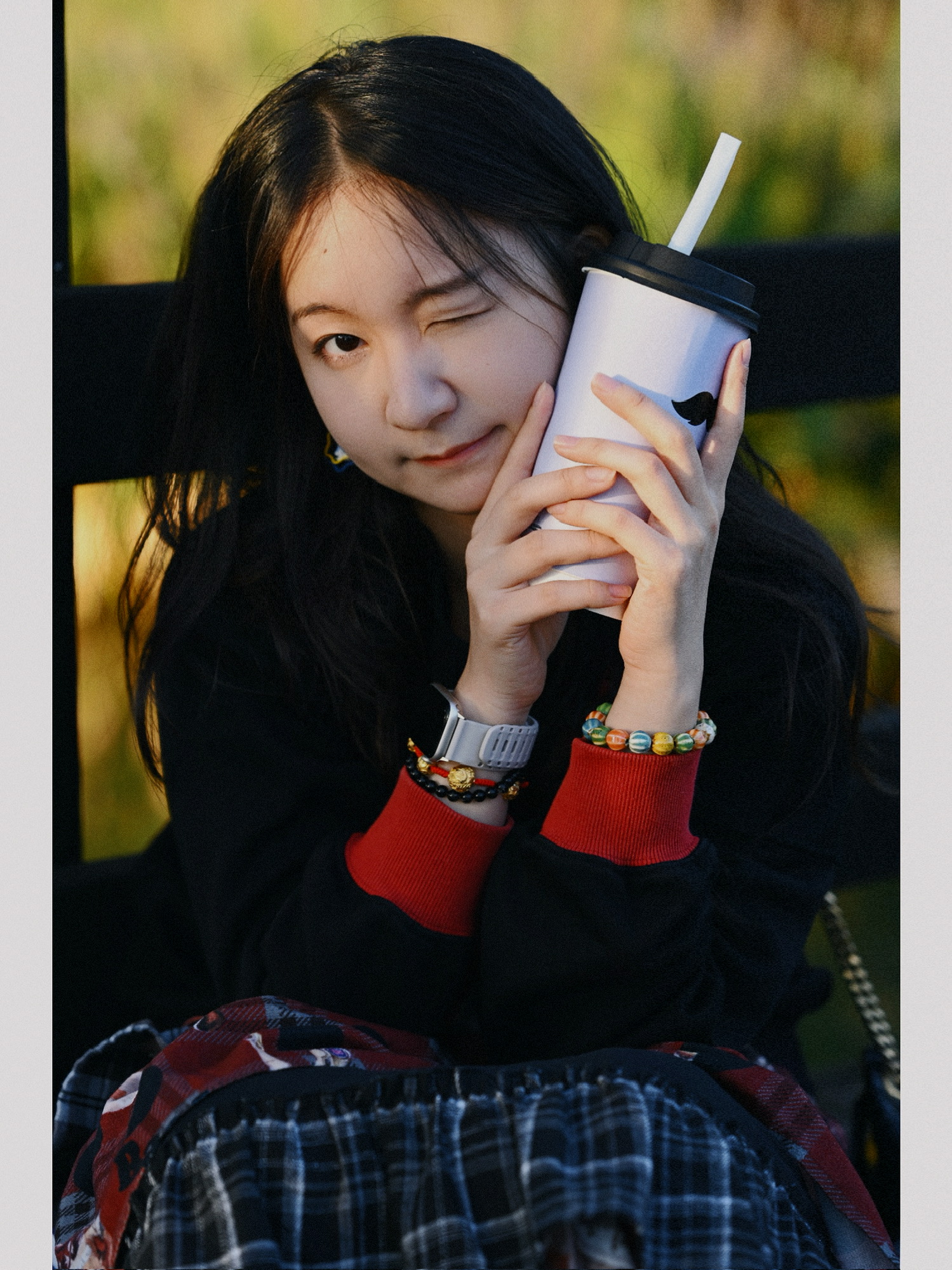 趁她喝奶茶,一个不注意;