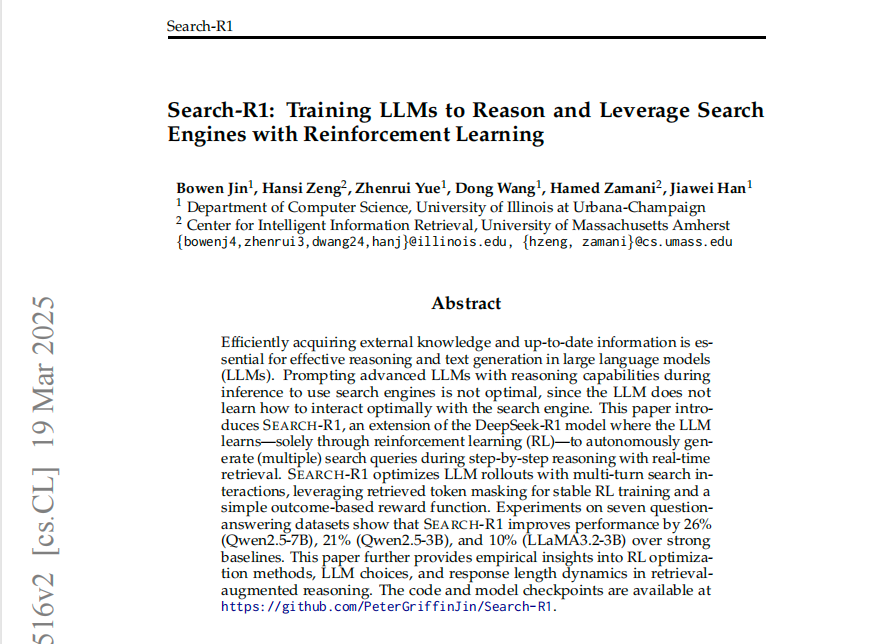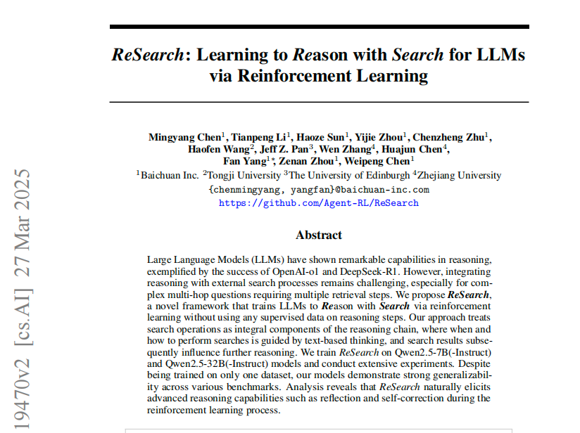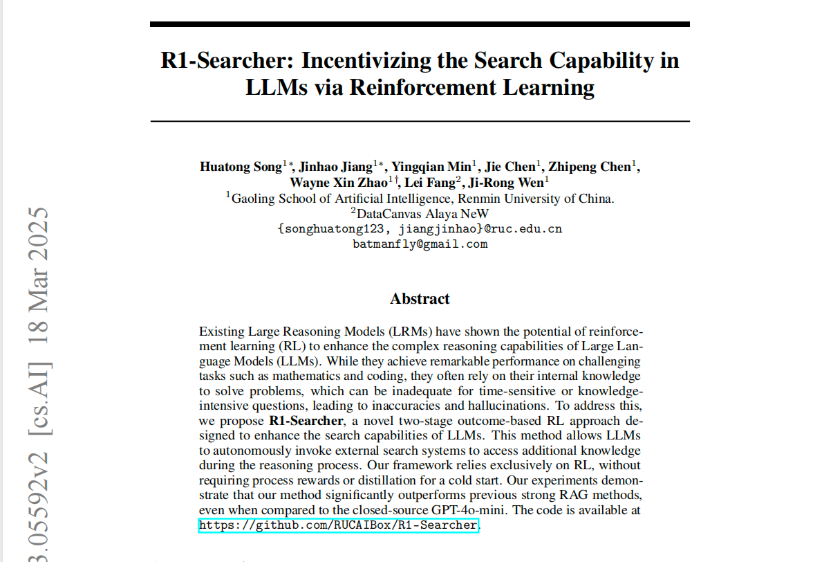 最近的search-R1、ReSearch、R1-Searcher证明了同一件事:RL训练确实能让LLM学会reasoning with search tool;在几K样本上训练后,QA任务的效果提升显著,并且可以泛化到out-of-domain,也能学会使用online search tool(训练时只使用了offline search tool);