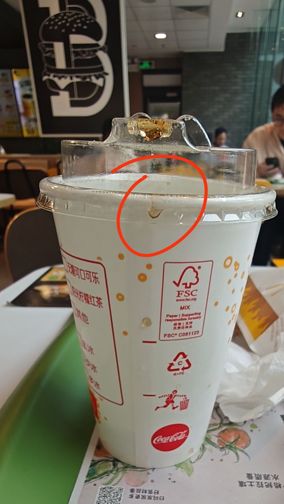 麦当劳换杯盖了,可爱是可爱,但是引水口变直接敞开的,而且麦门那玩意儿会顶鼻子……