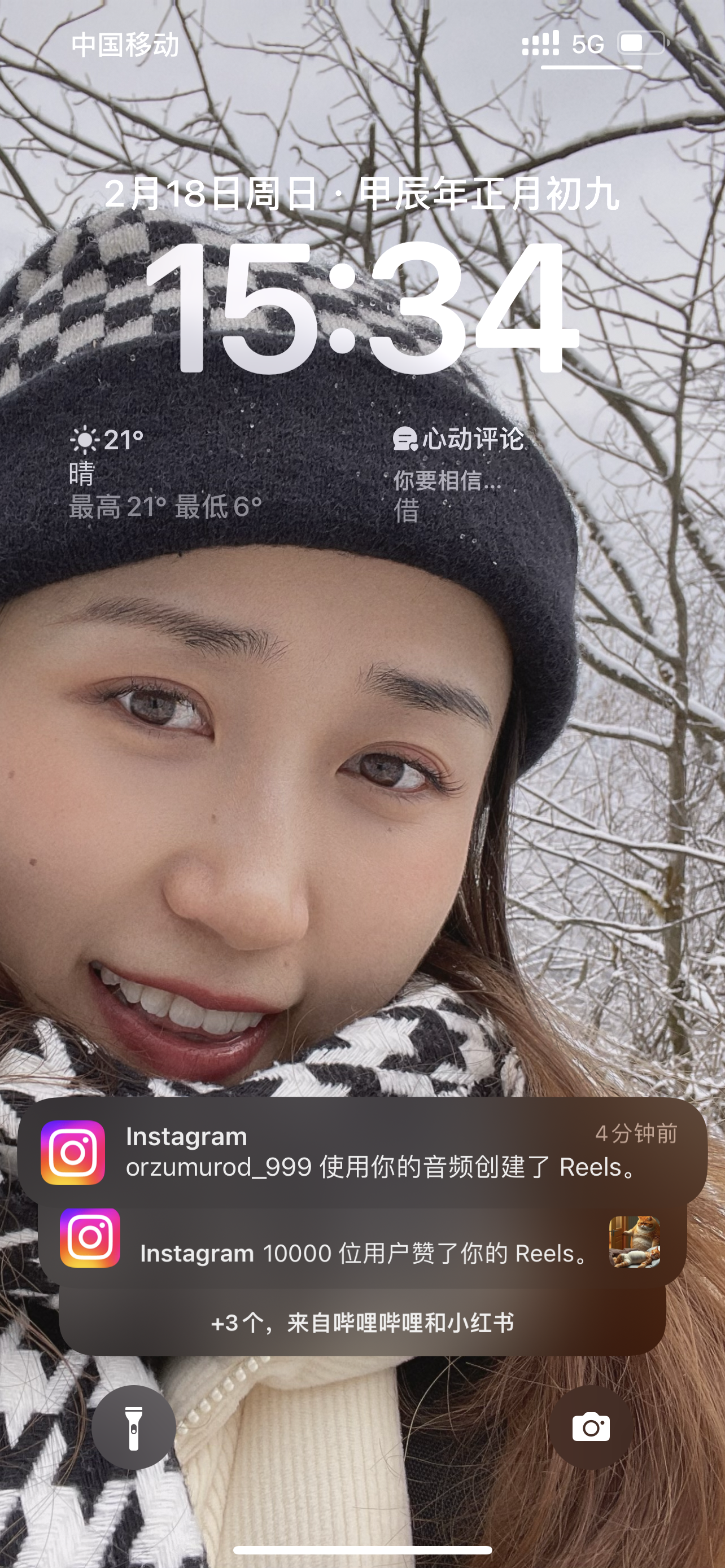 “instagram 10000 位用户赞了你的 Reels。”