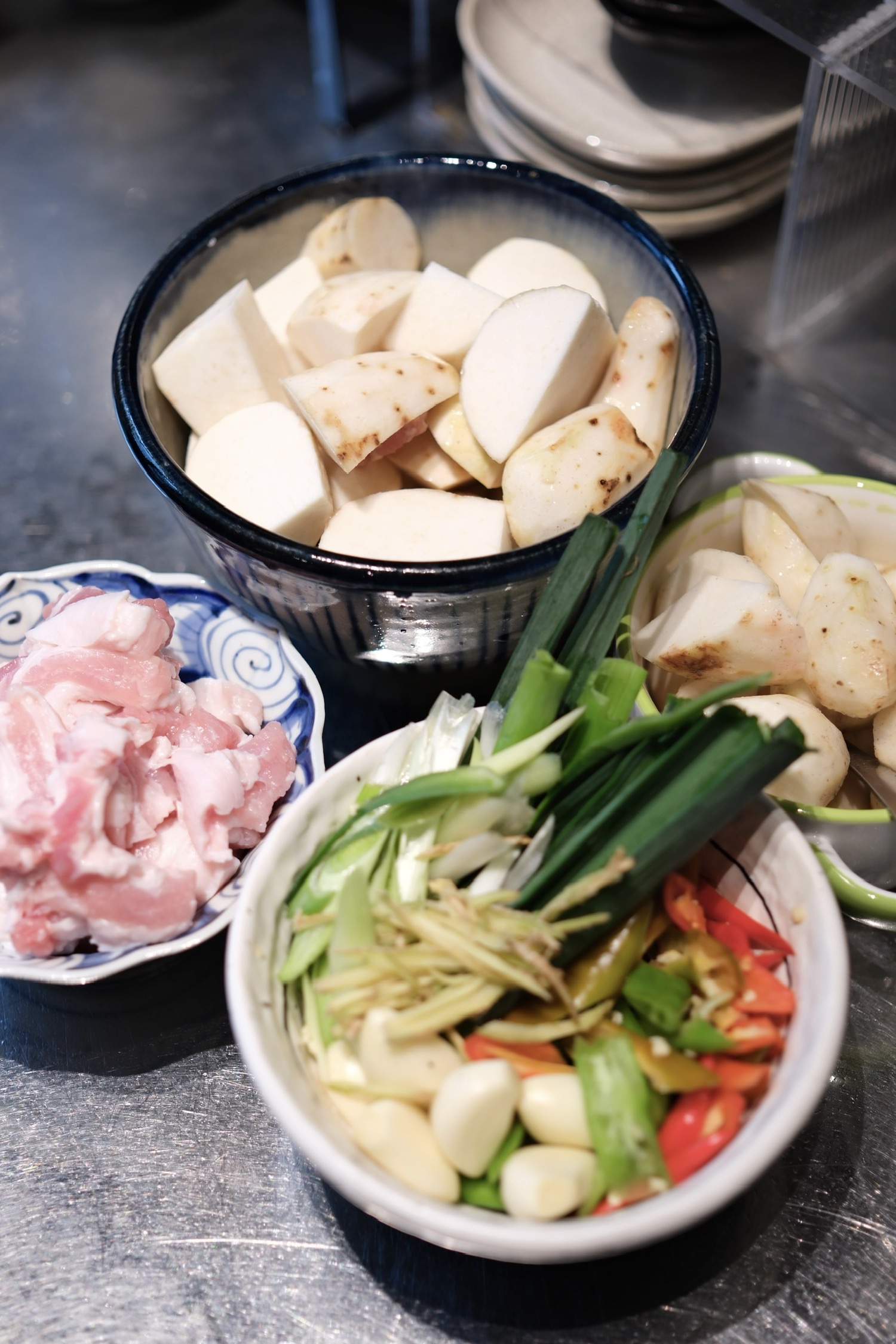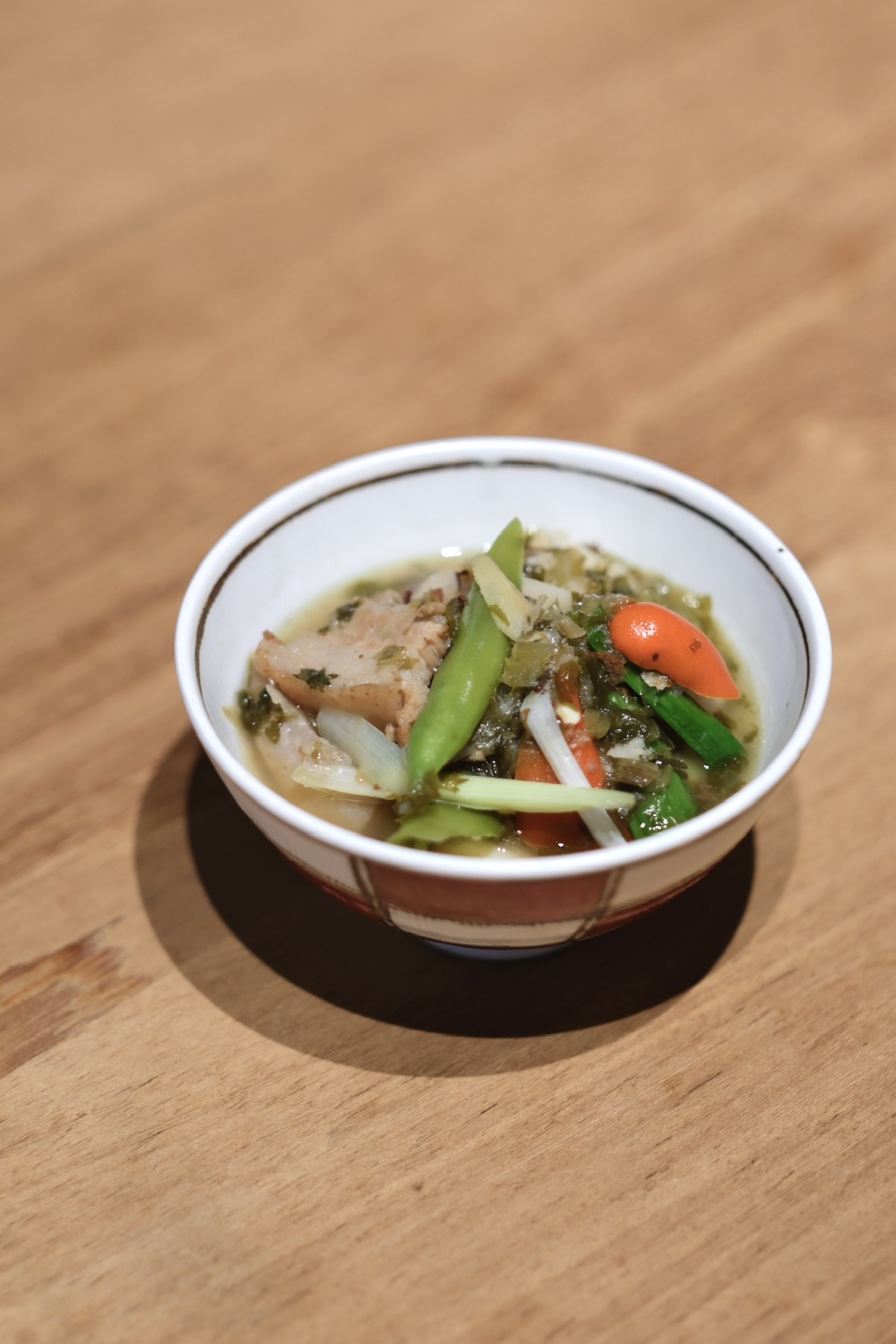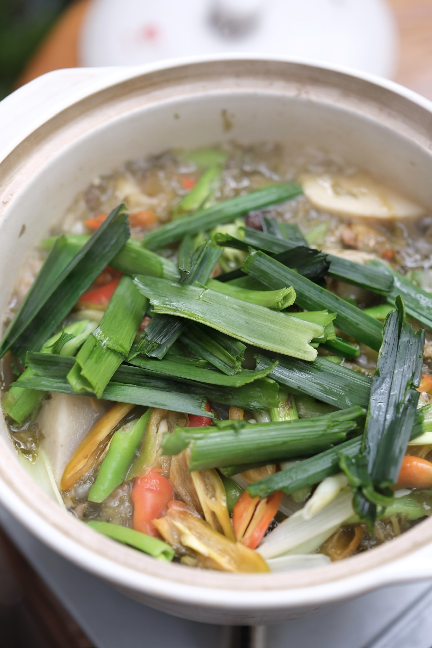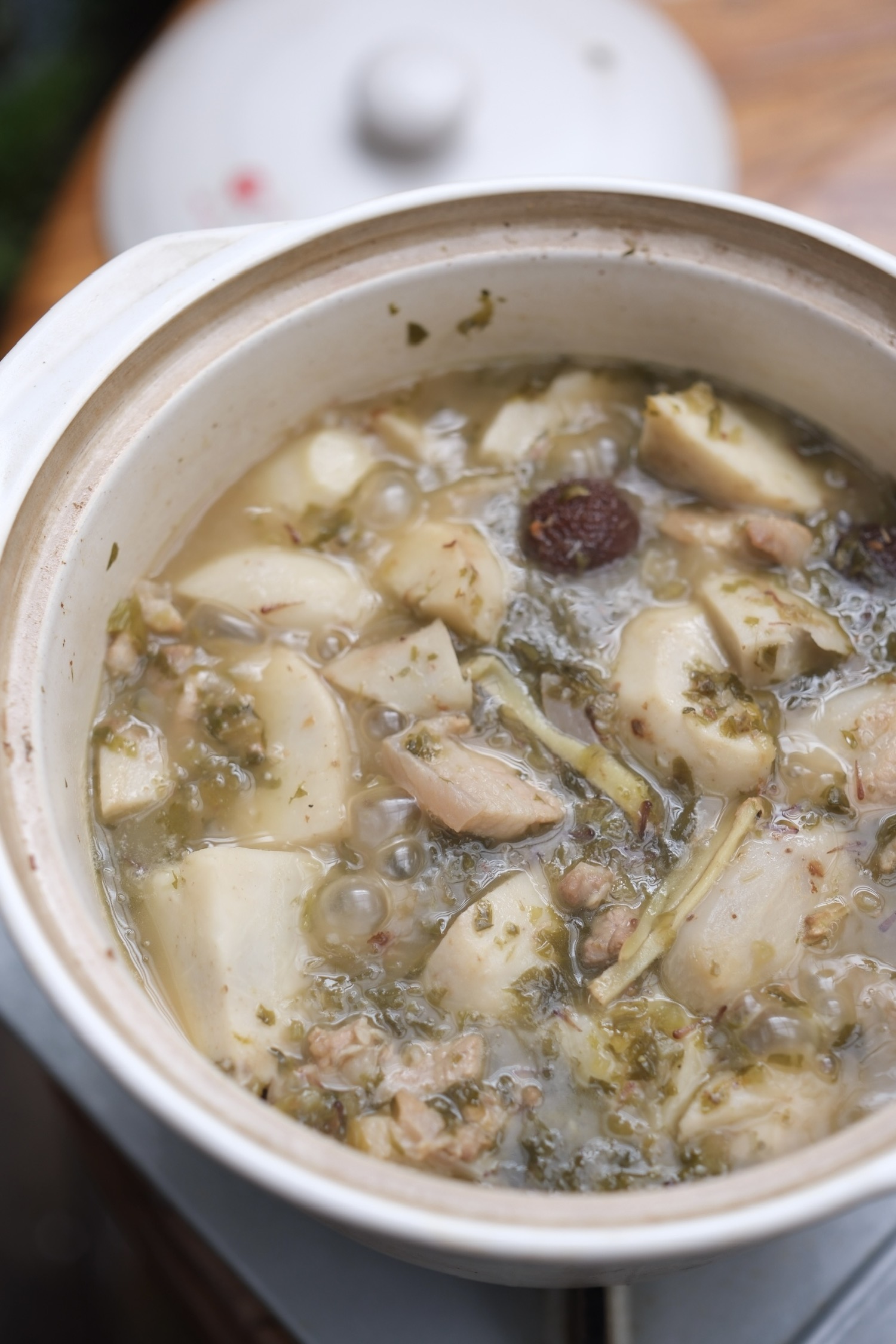 我给邻居分了些做的雪菜炖芋艿