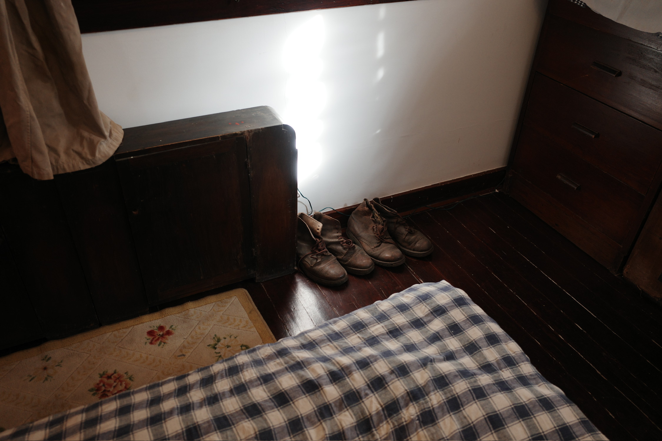 妻子去世之前让朋友劝他以后续弦,他一直没有,把双人床锯成单人床,把老婆的棉毛衫棉毛裤裁剪成适合自己的大小,晚年一直在穿。