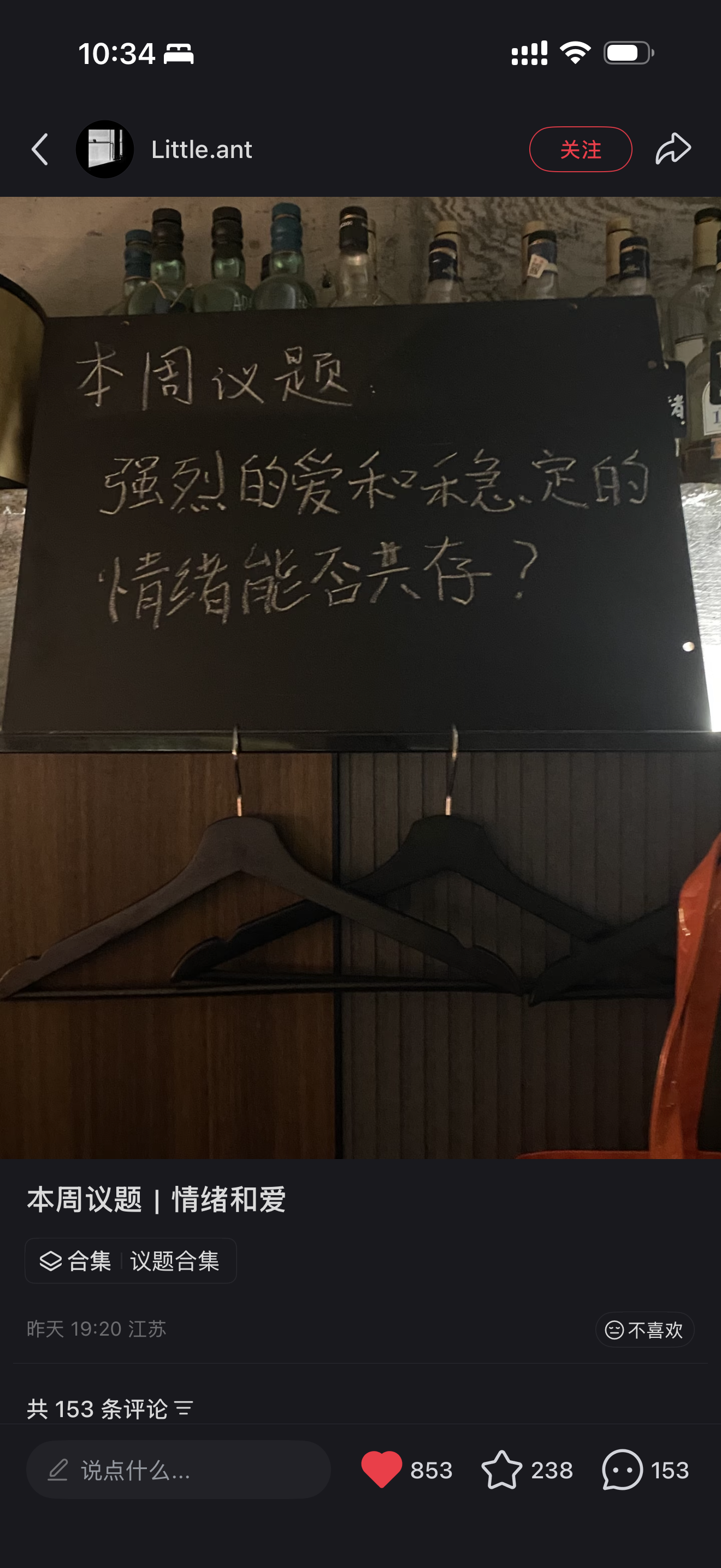 看到有个苏州的酒吧会在店里写一些议题,关于他者,自己,关于爱。聊出什么结果不重要,关键是聊点除了喝酒游戏以外的比较重要