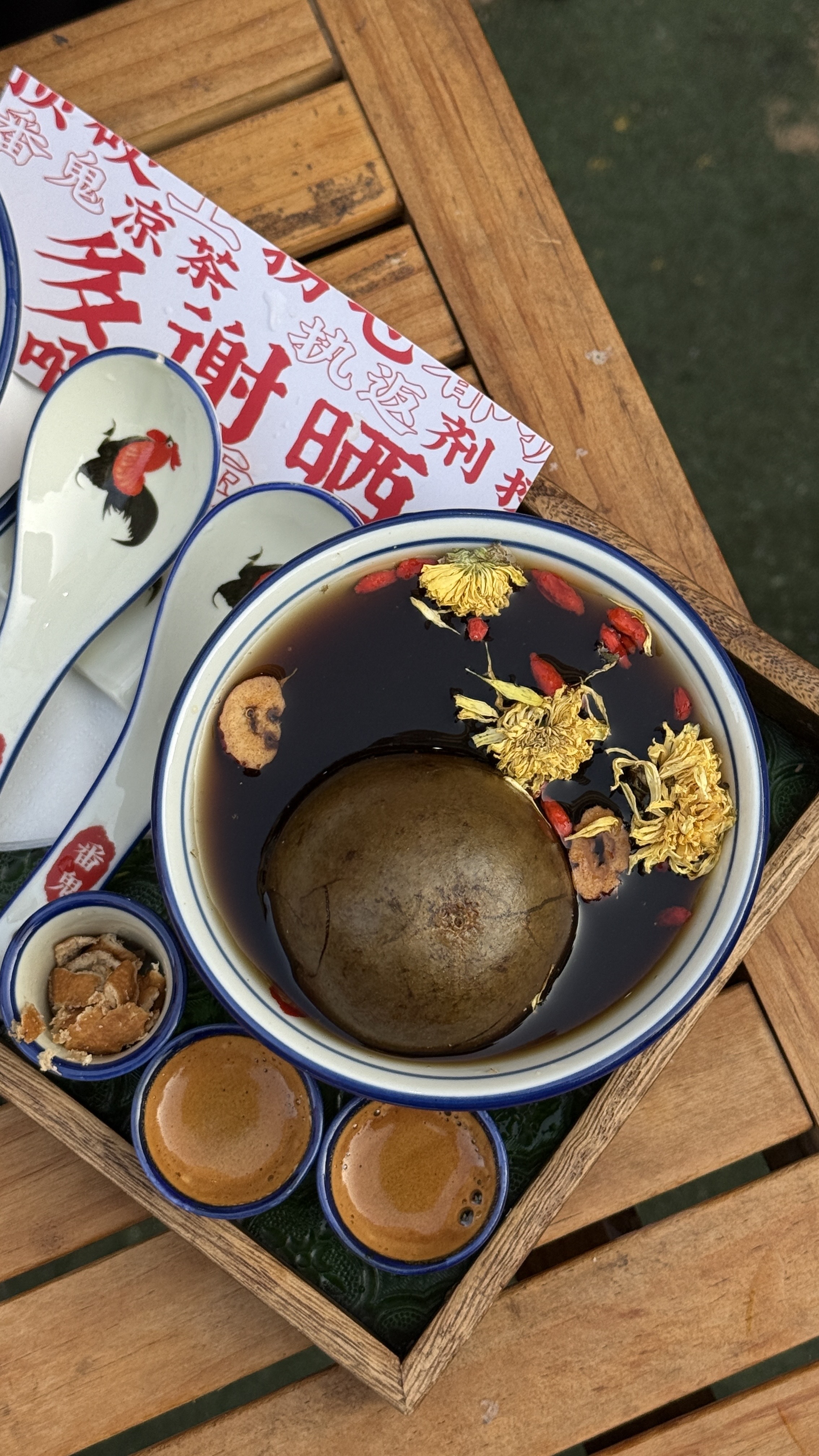 喝了杯凉茶美式。焦苦的咖啡混上草本涩凉的广式凉茶,苦得发齁,真的是一副咖啡中药。